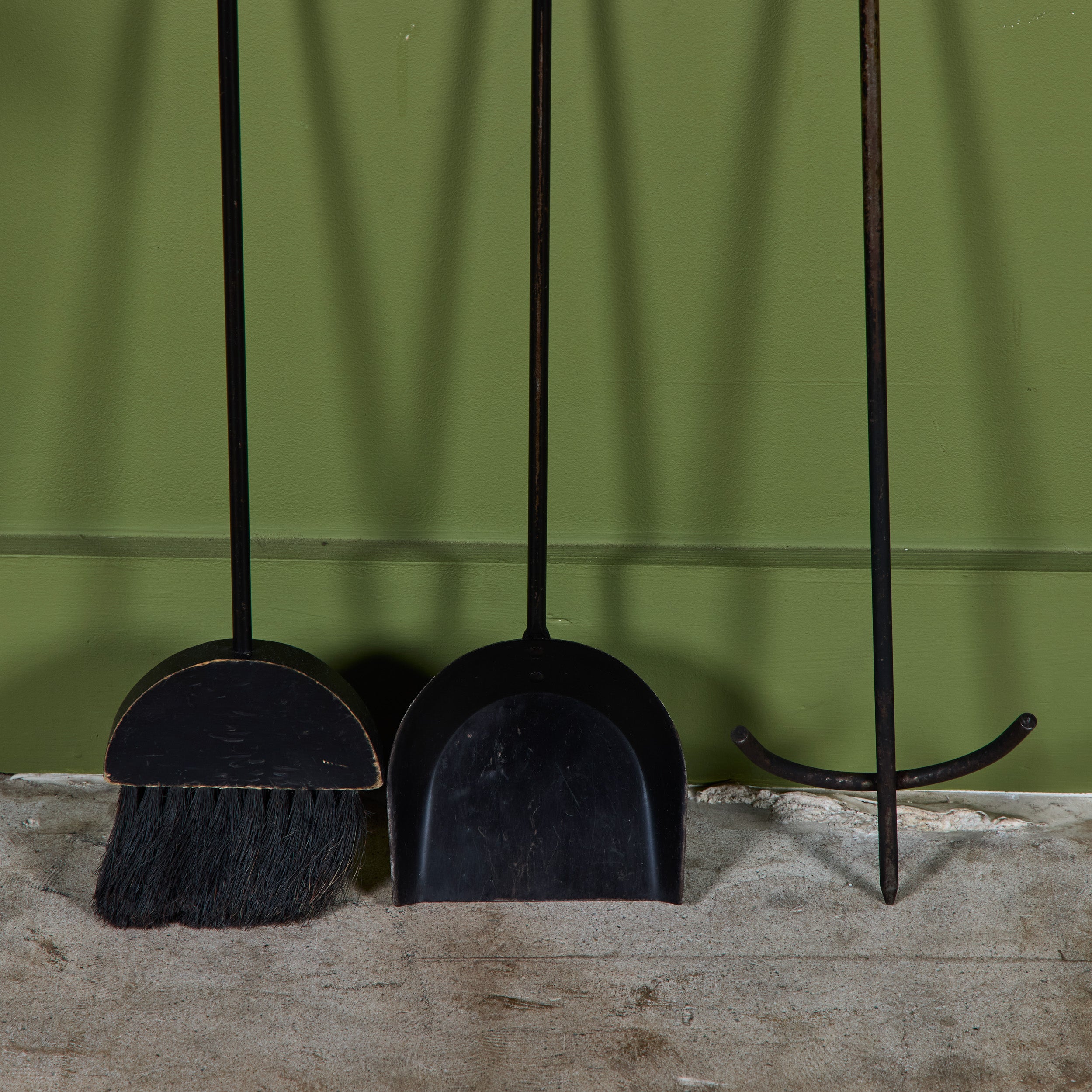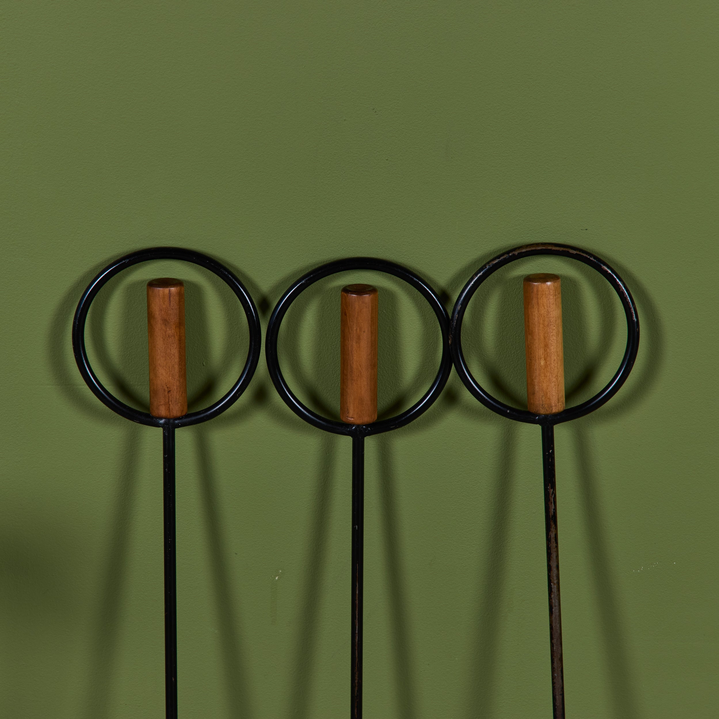 Set of Wrought Iron Fireplace Tools with Wood Handles