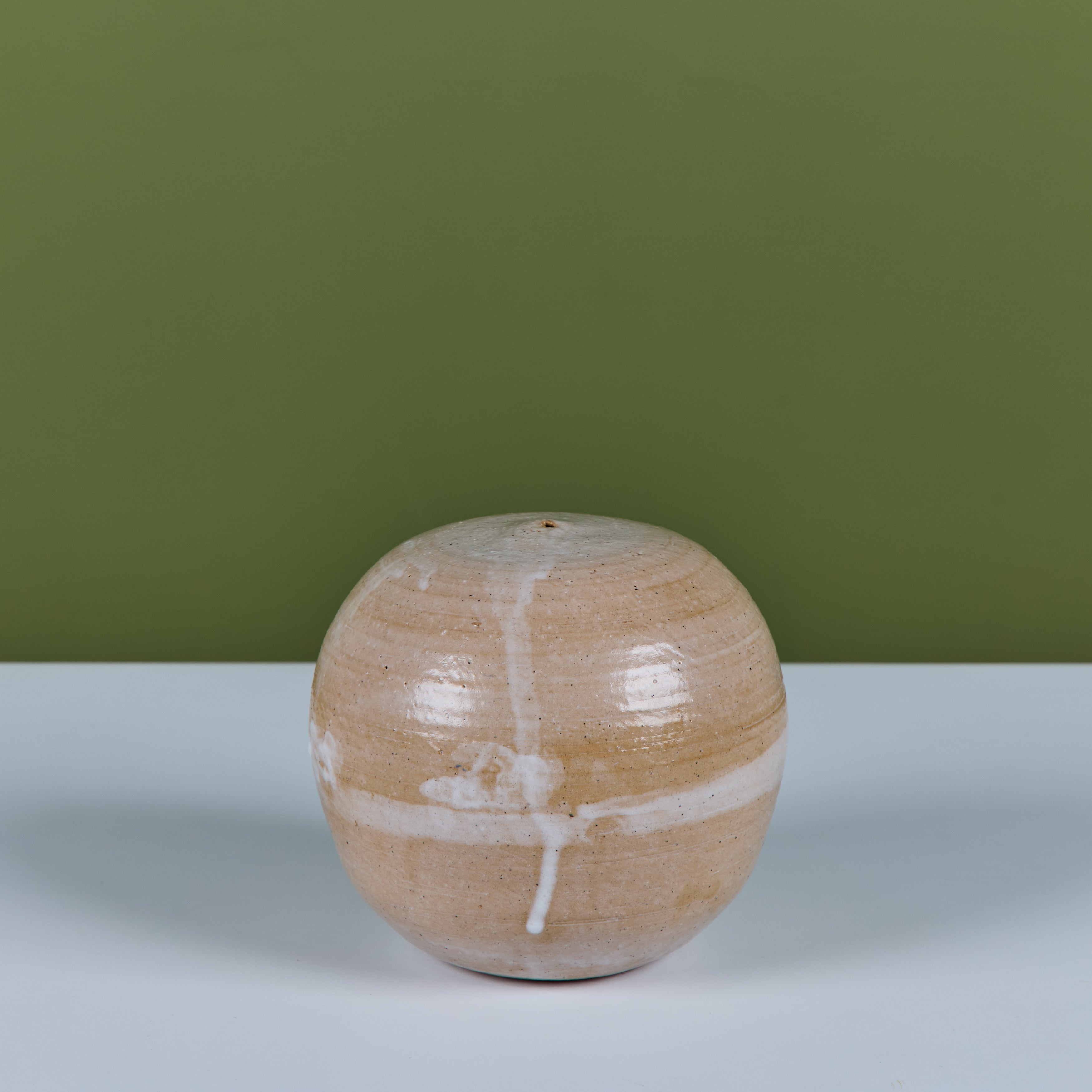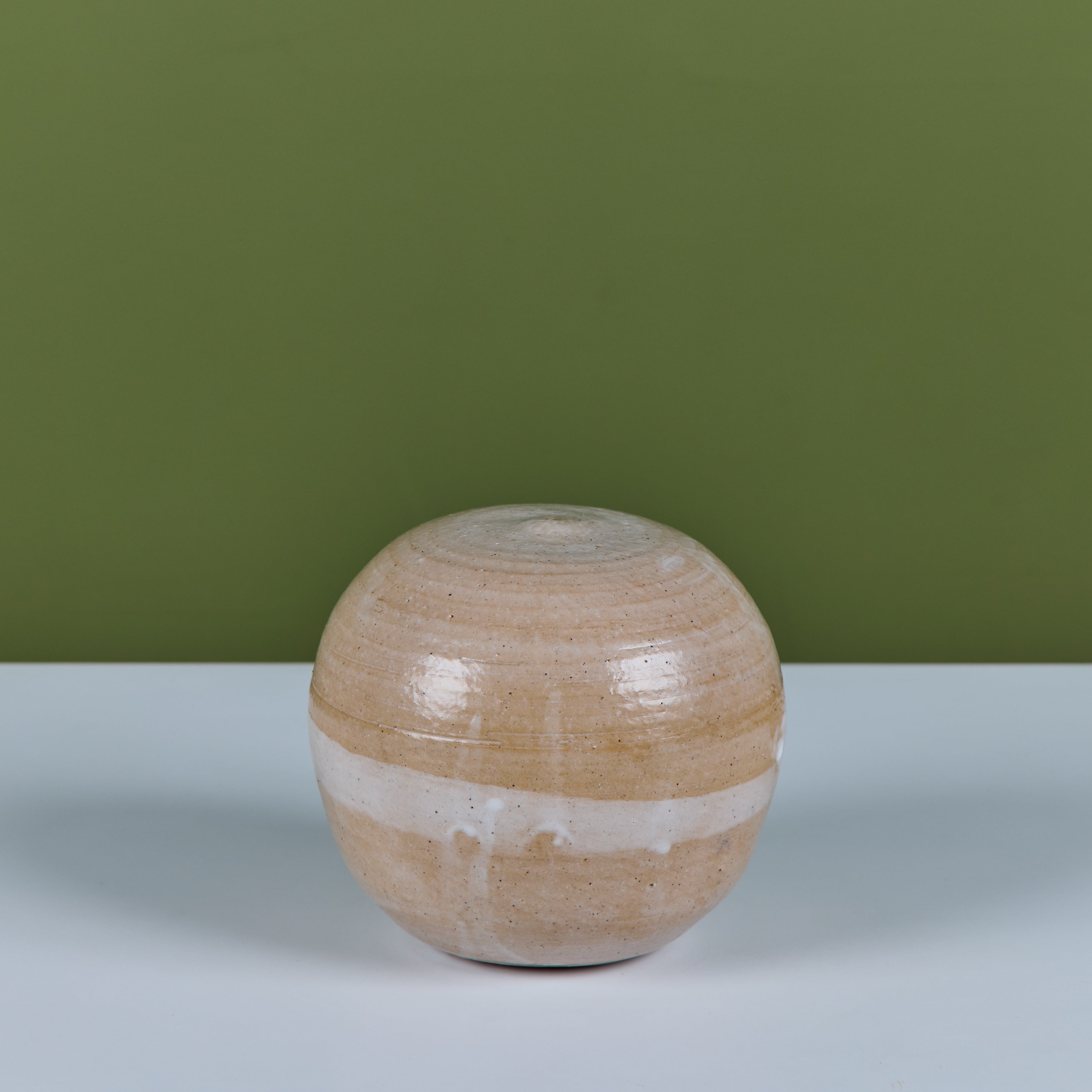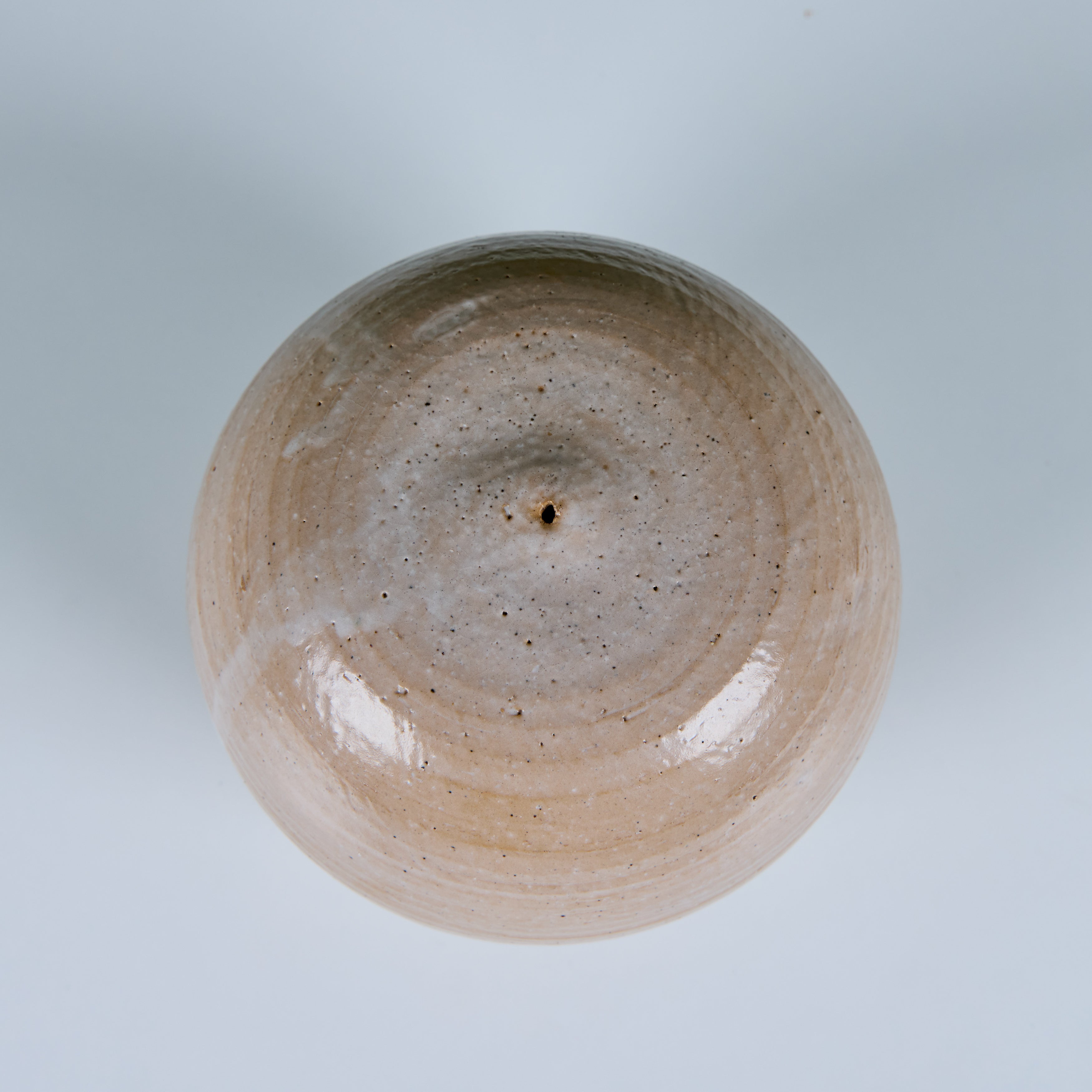 Studio ceramic weed pot in soft peach tones with a cream drop banding at the center.