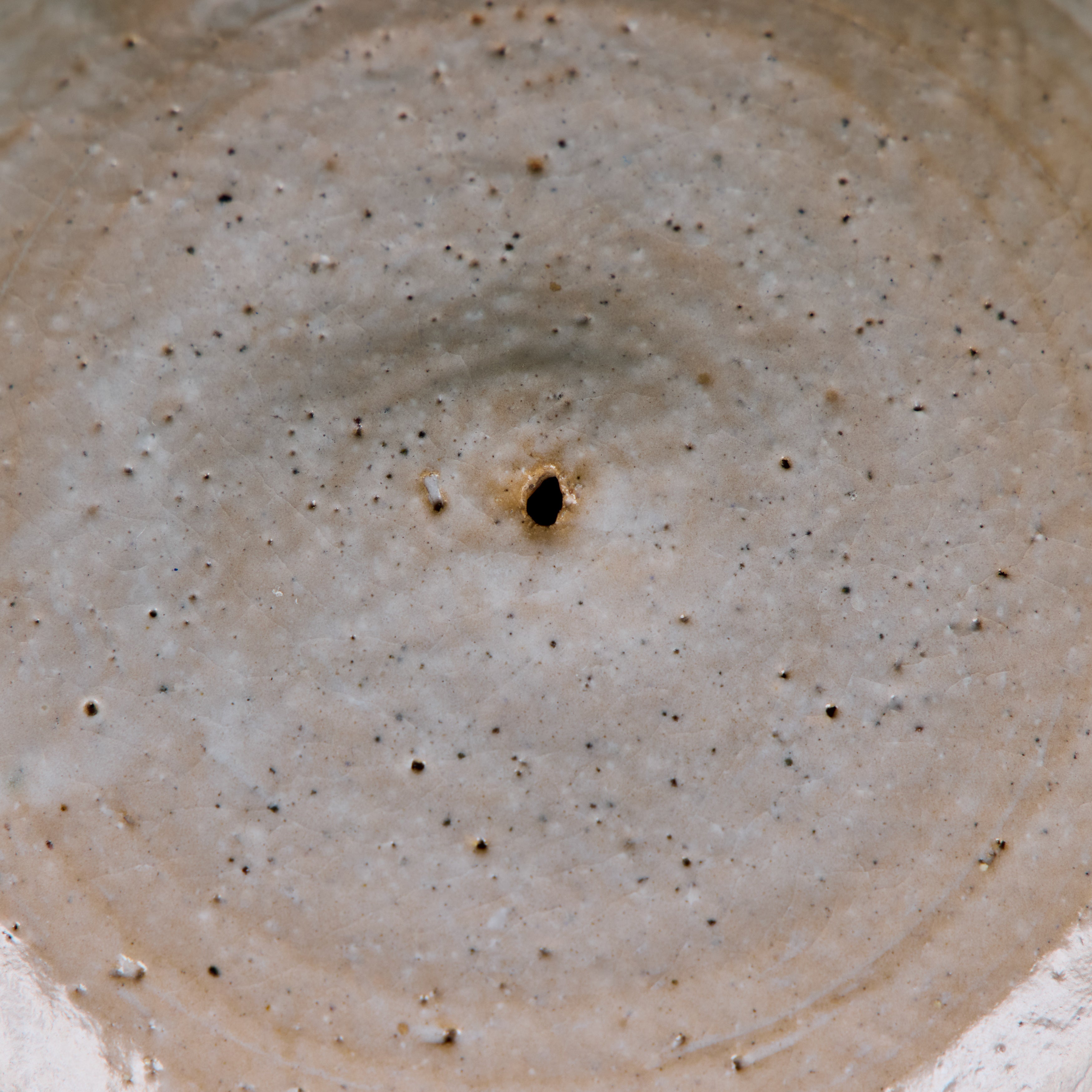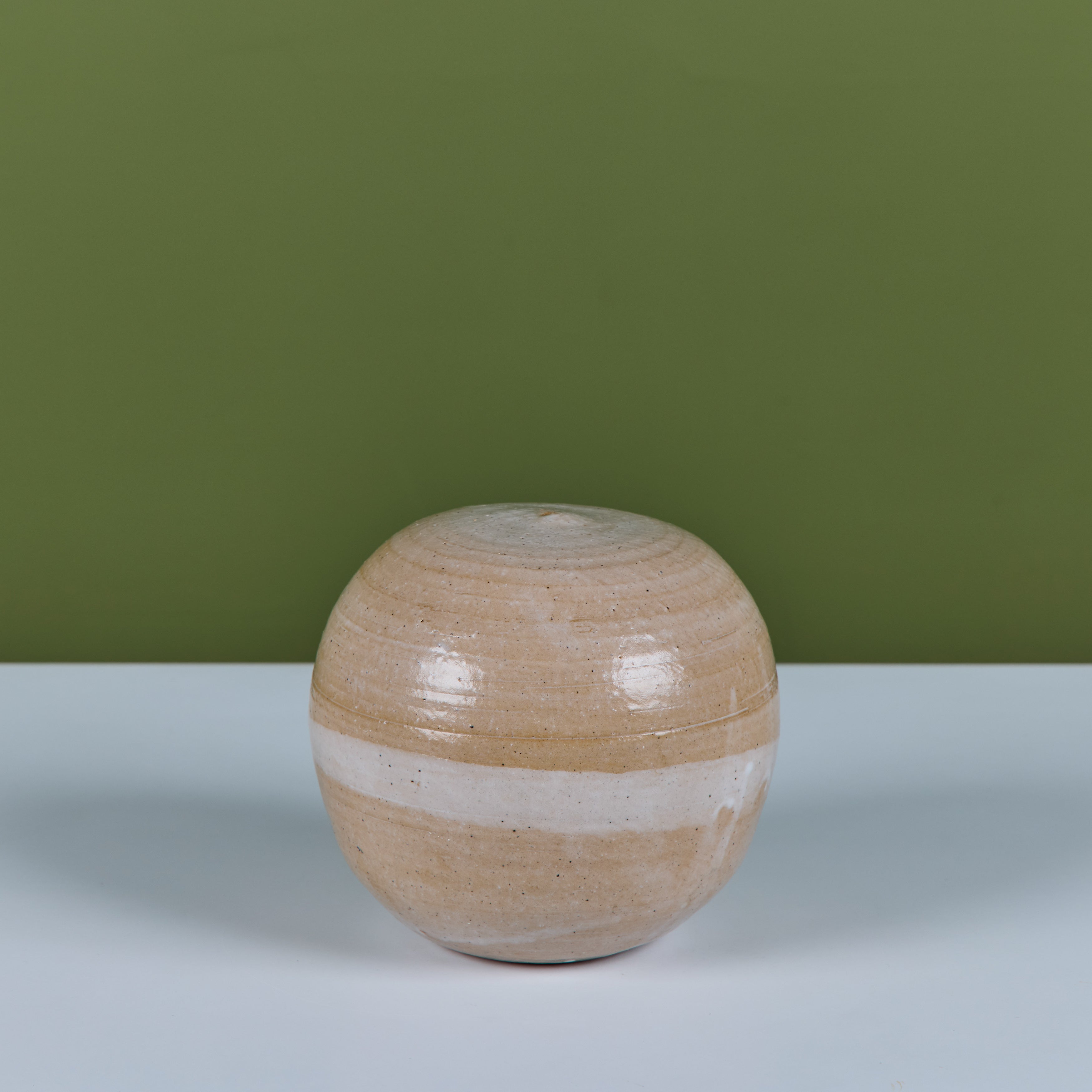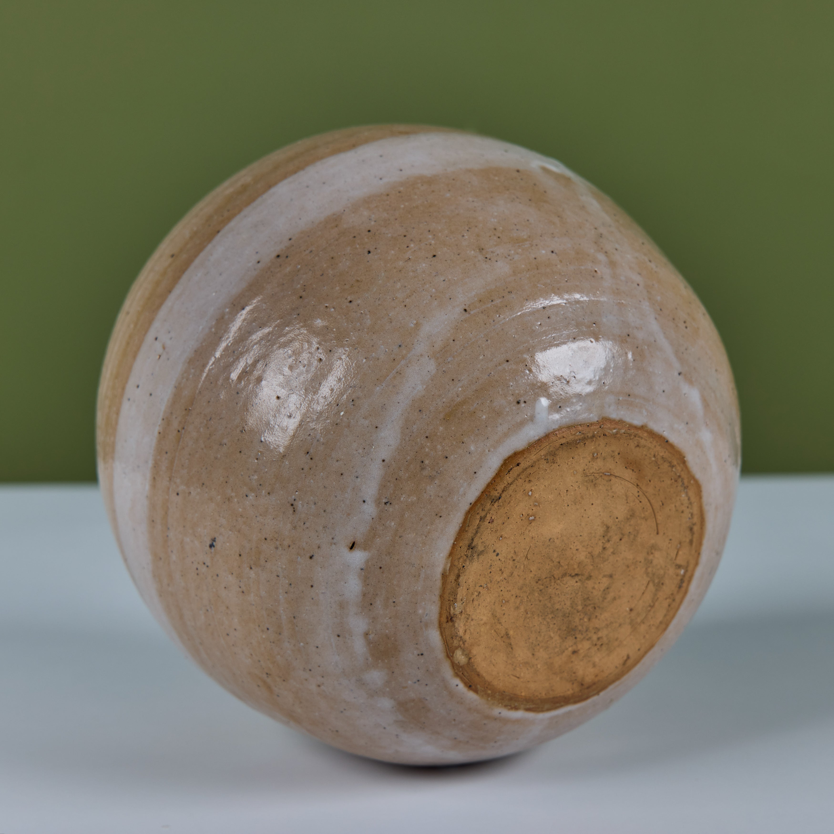 Studio ceramic weed pot in soft peach tones with a cream drop banding at the center.