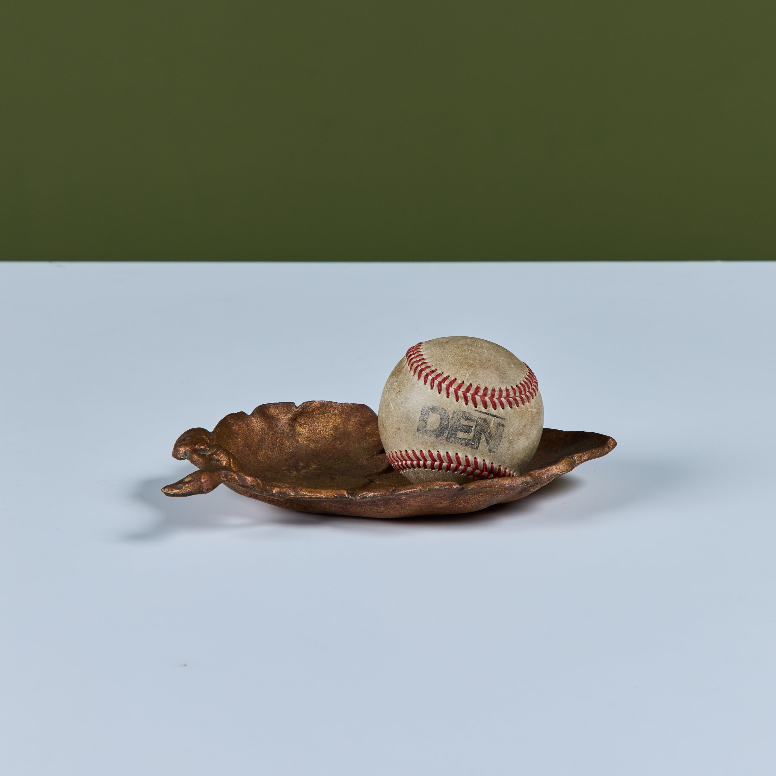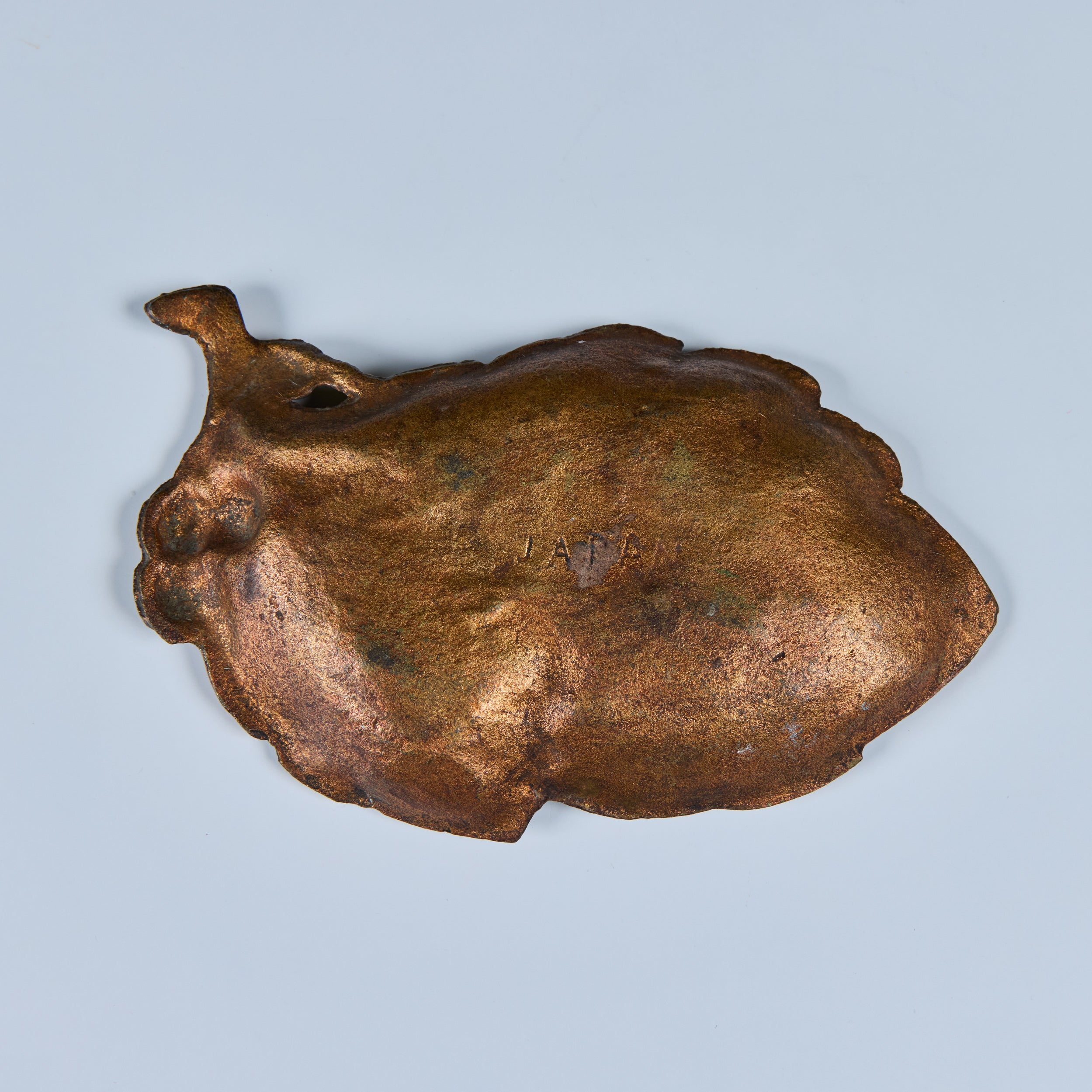 Cast iron Japanese leaf dish with copper enamel.
