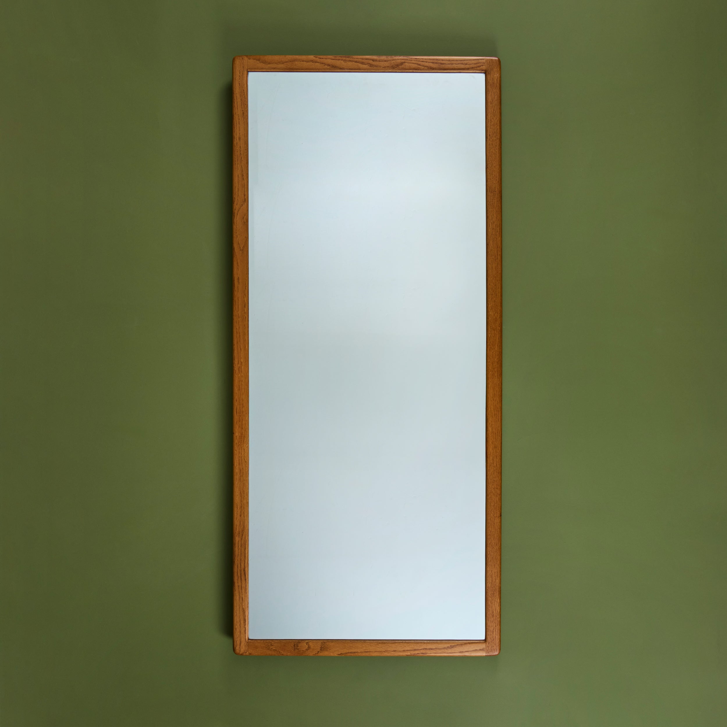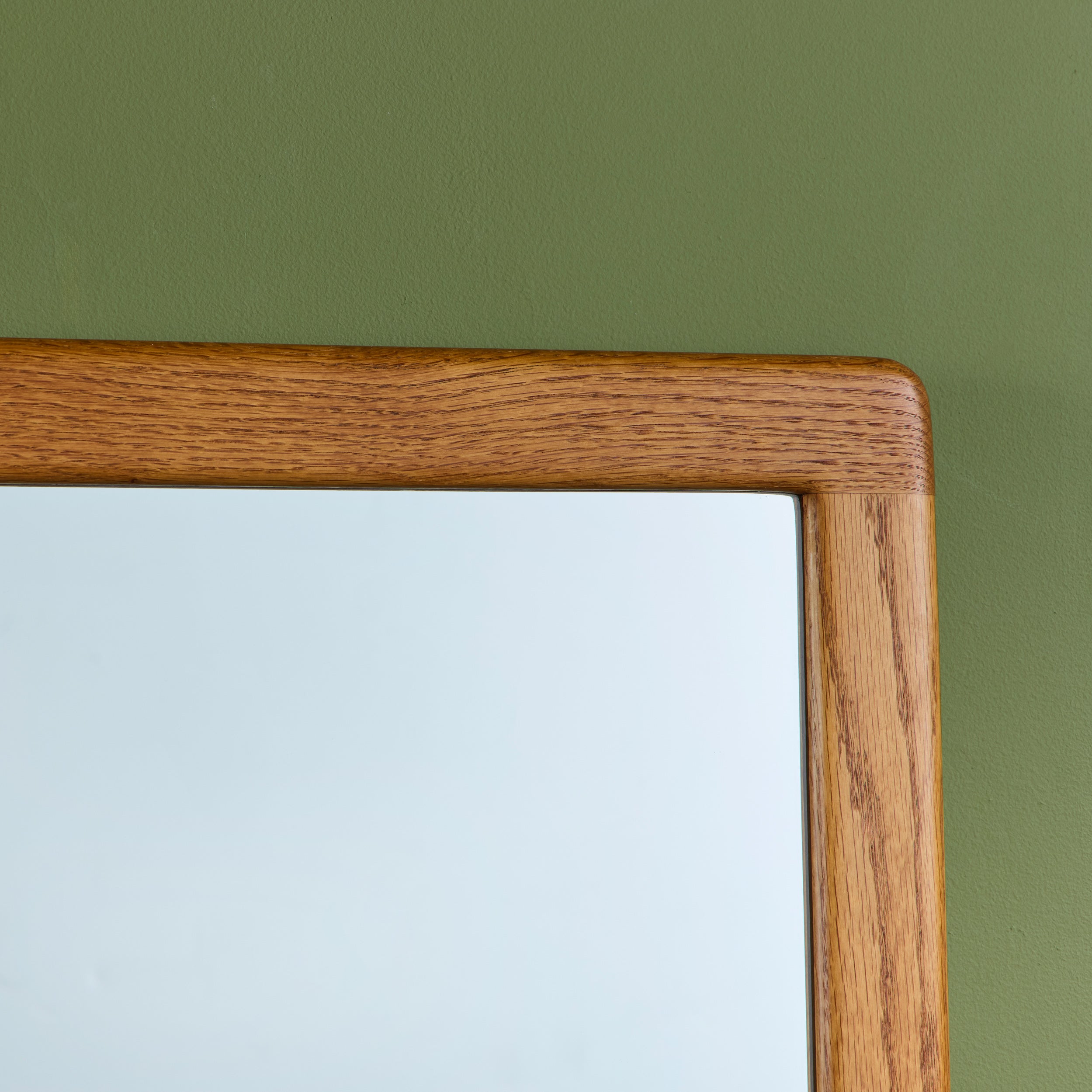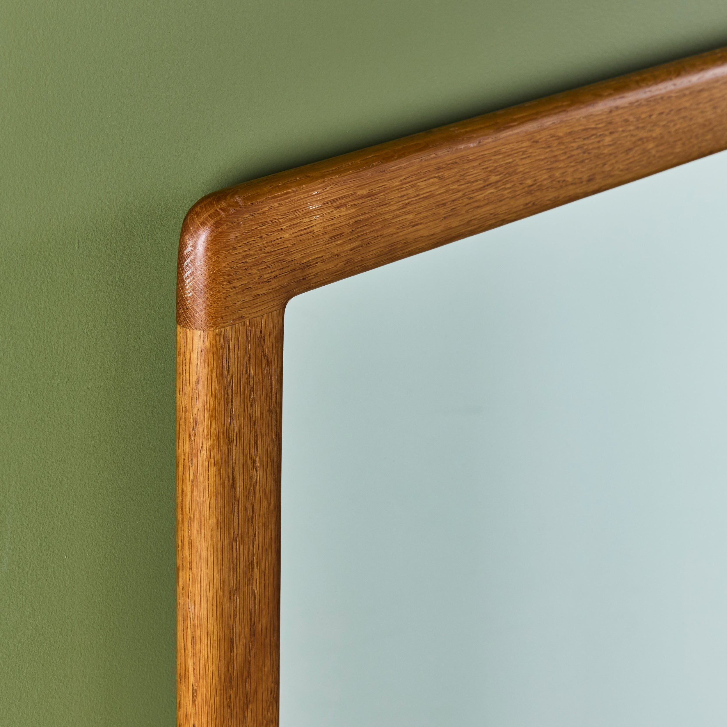 Oak mirror from American designer Gerald McCabe for Eon Furniture, c.1970s. The large scale mirror can be mounted both vertically and horizontally to a wall. Original glass in mirror.