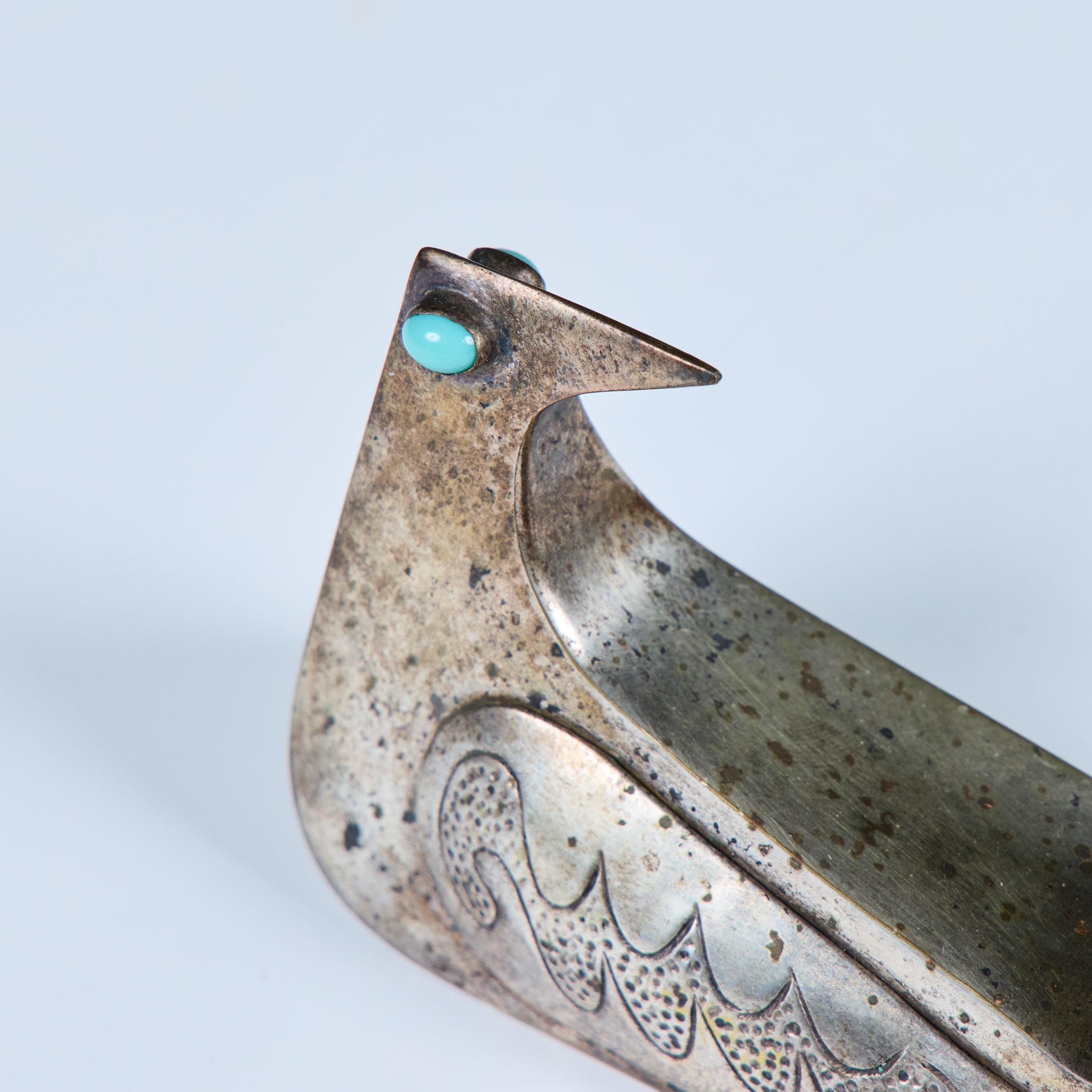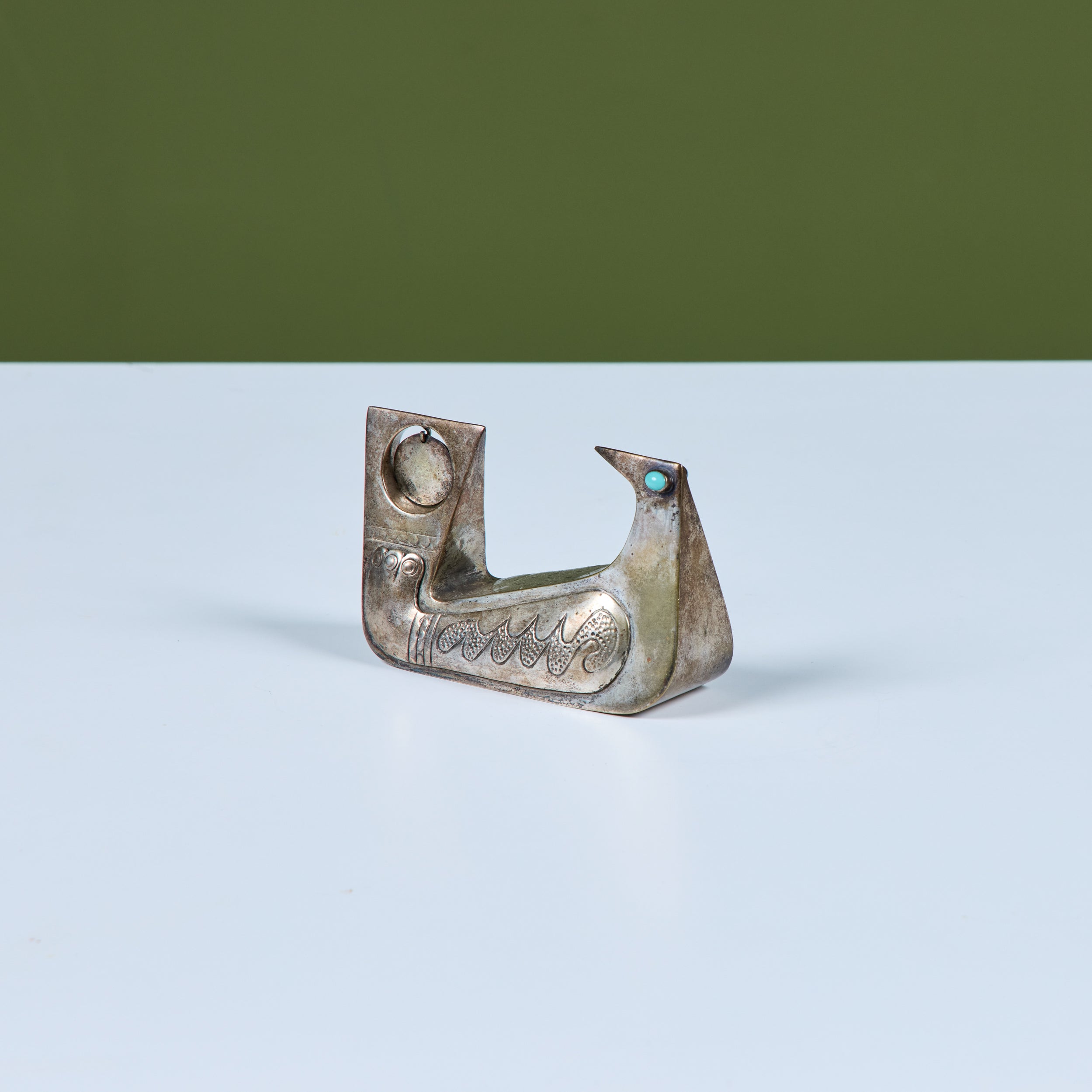 Silver and Turquoise Bird Sculpture by Joaquin Taller Tinta