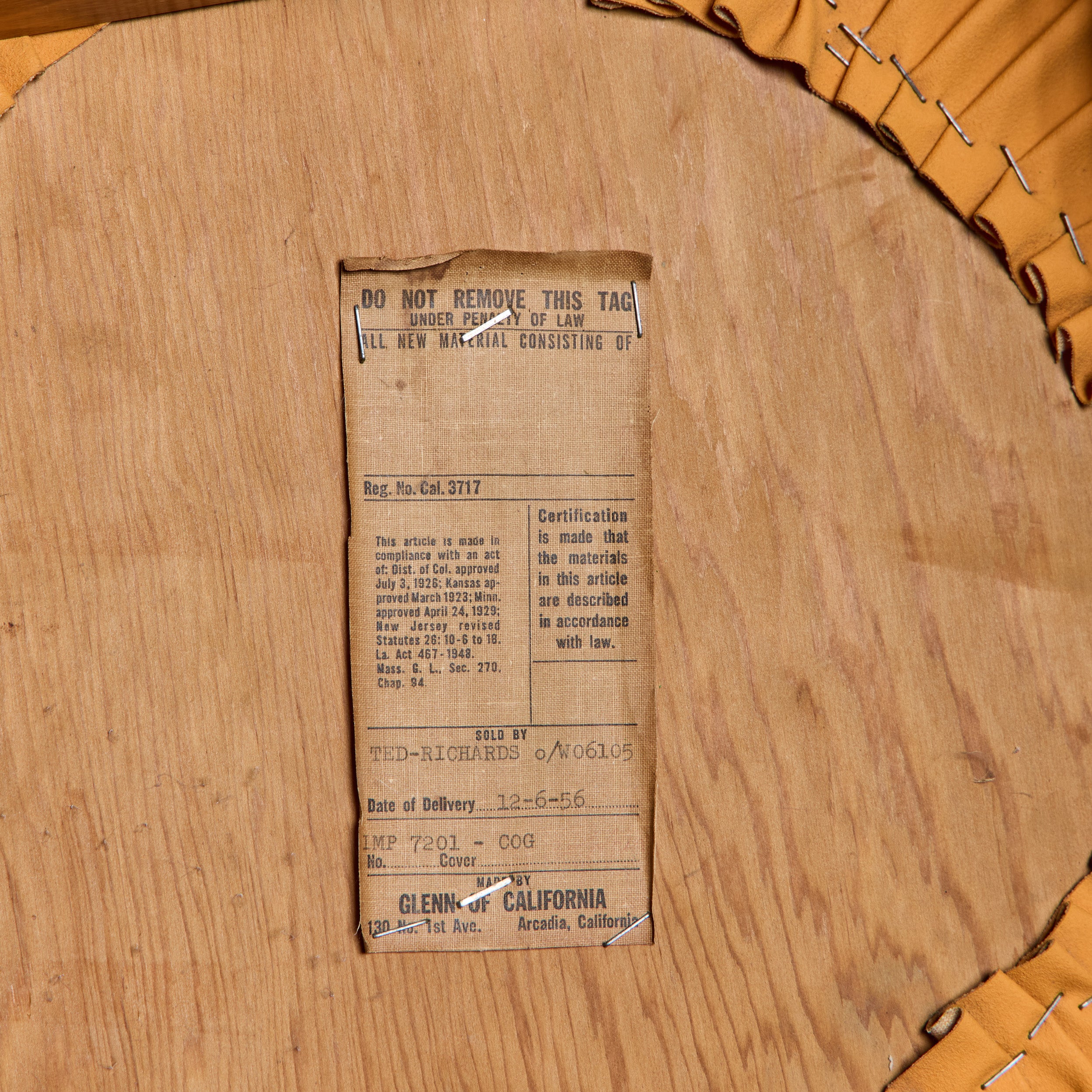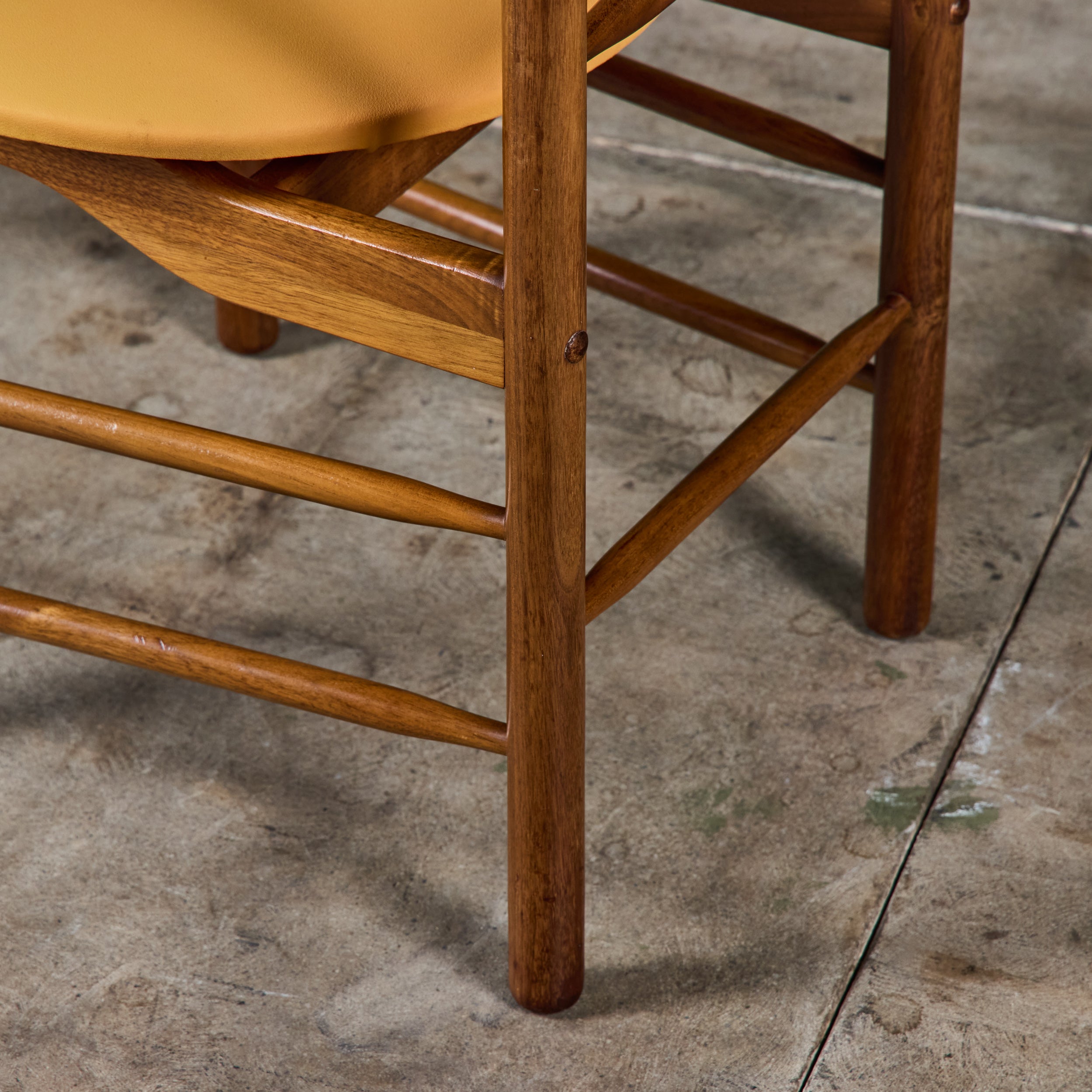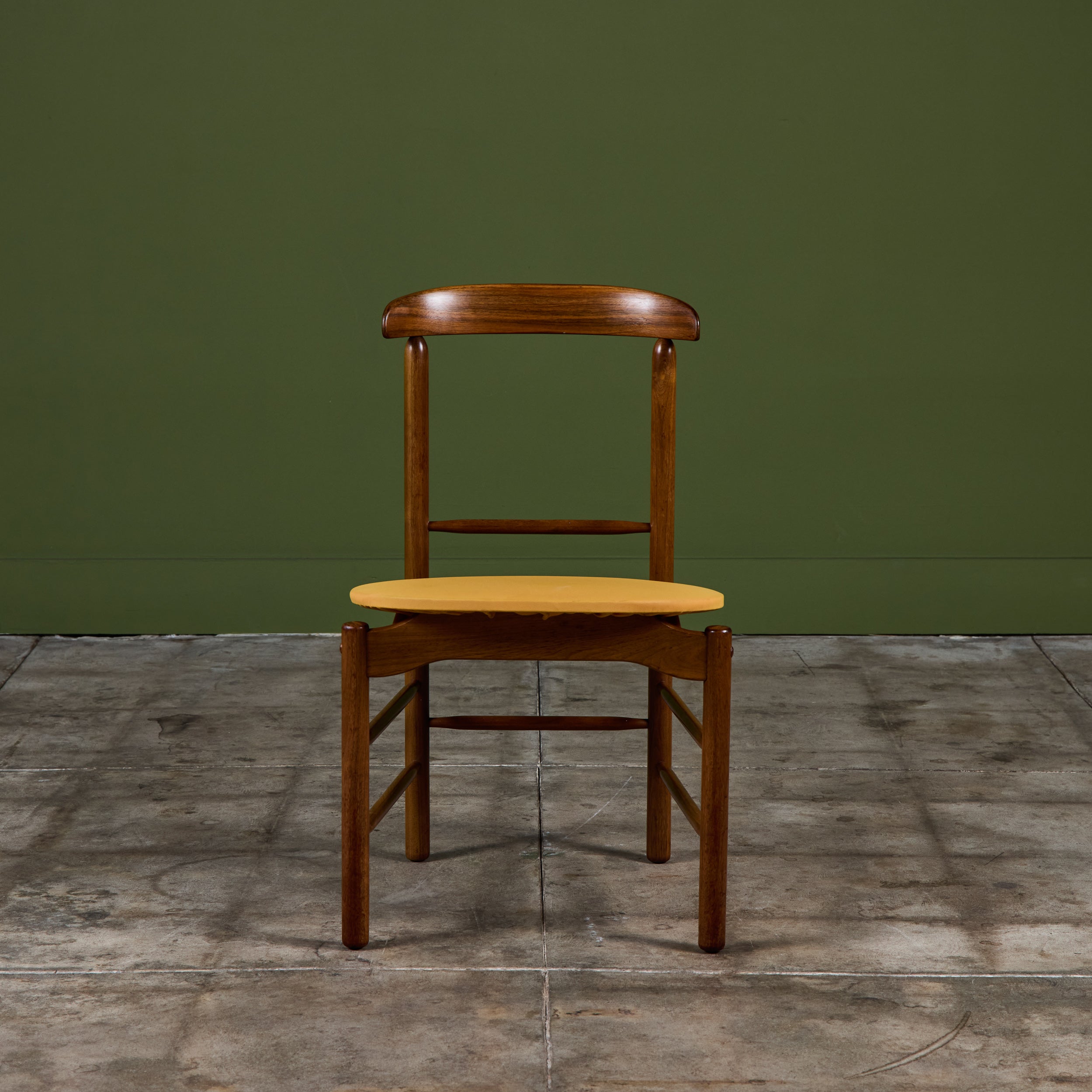 Set of six dining chairs by Greta M. Grossman for Glenn of California, c.1956, USA. The chairs feature a solid walnut wood frame with a golden yellow upholstered seat.