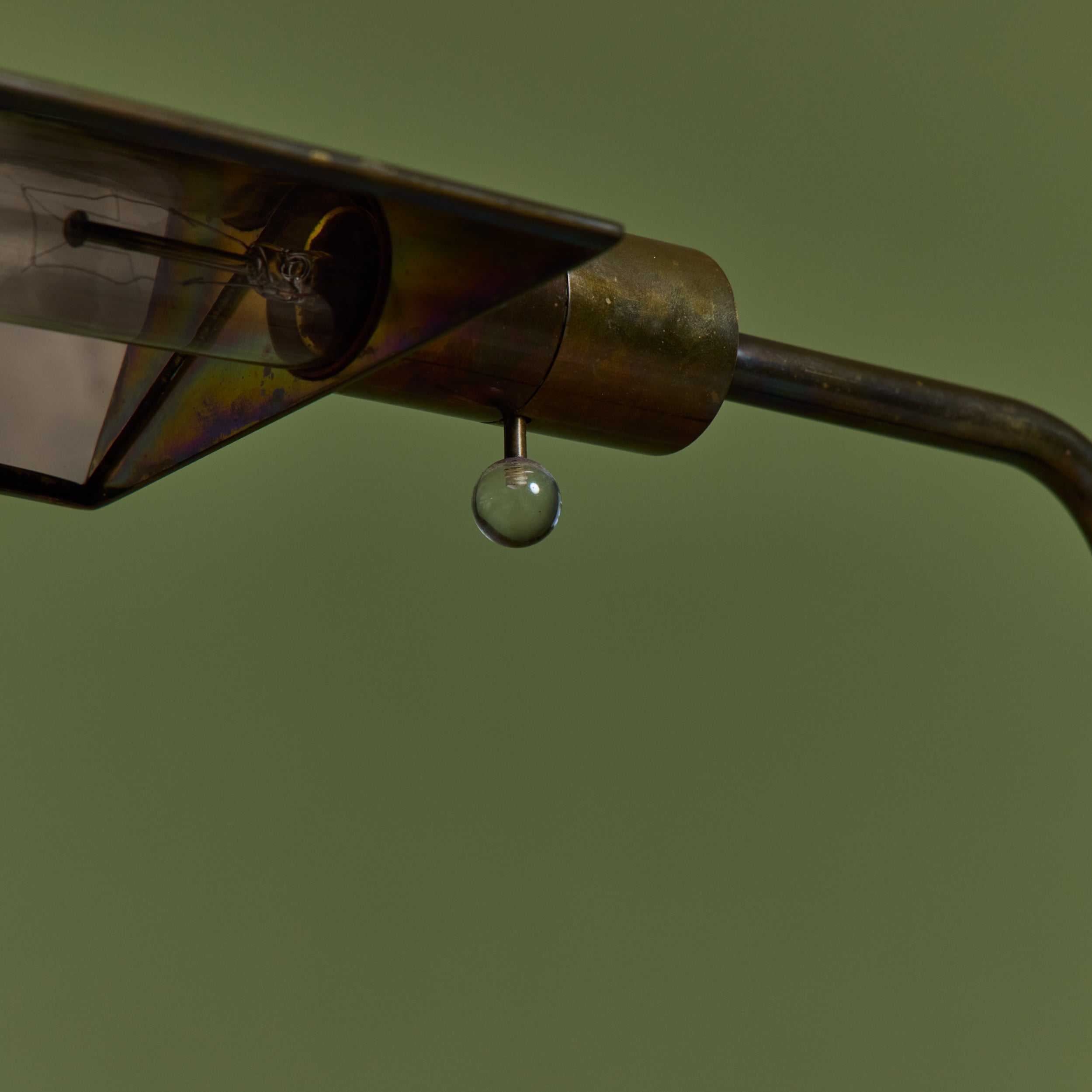 Good vintage condition; brass has developed a dark natural patina and has not been polished in accordance with the wishes of the designer. Minimal cosmetic wear, appropriate to age and use. Newly rewired.