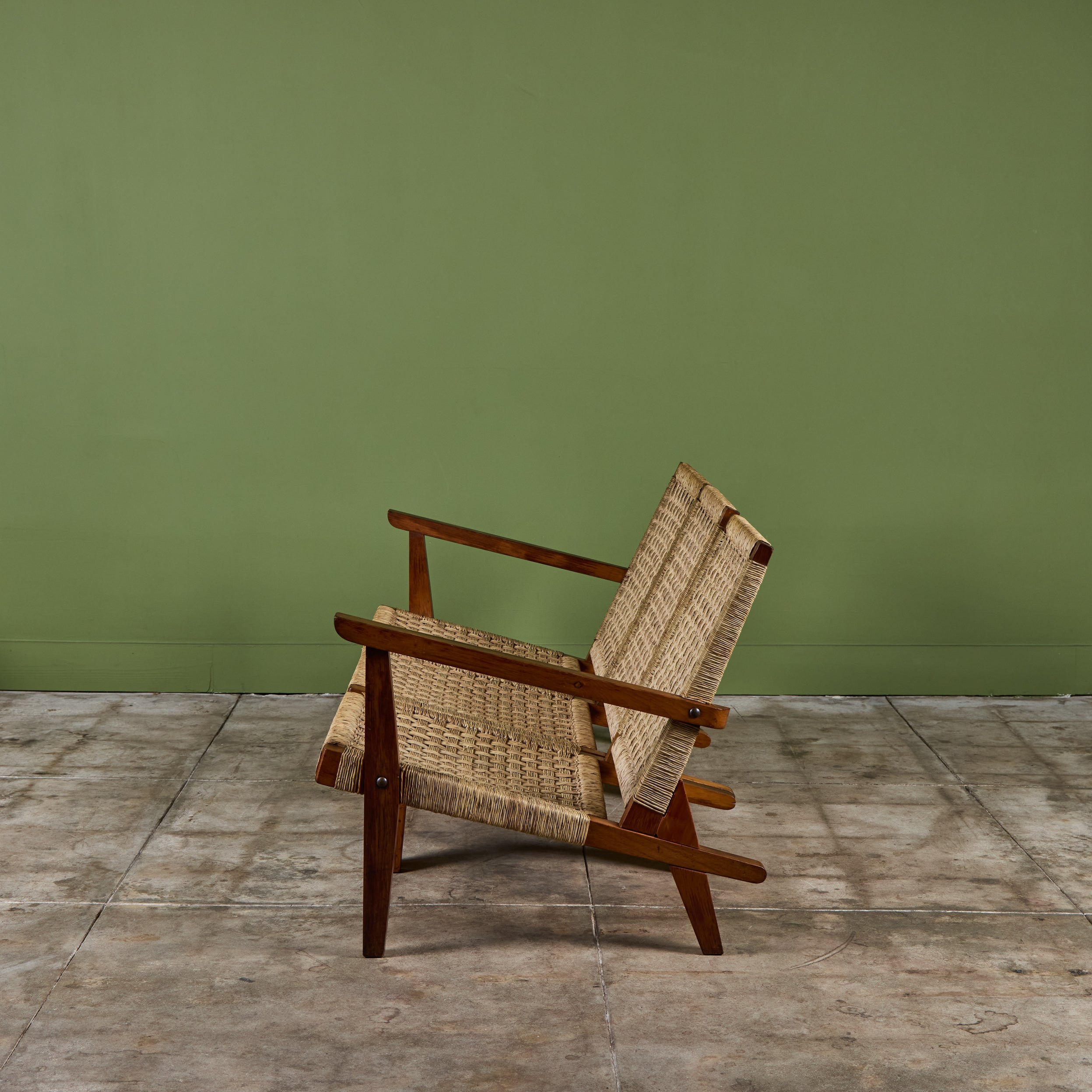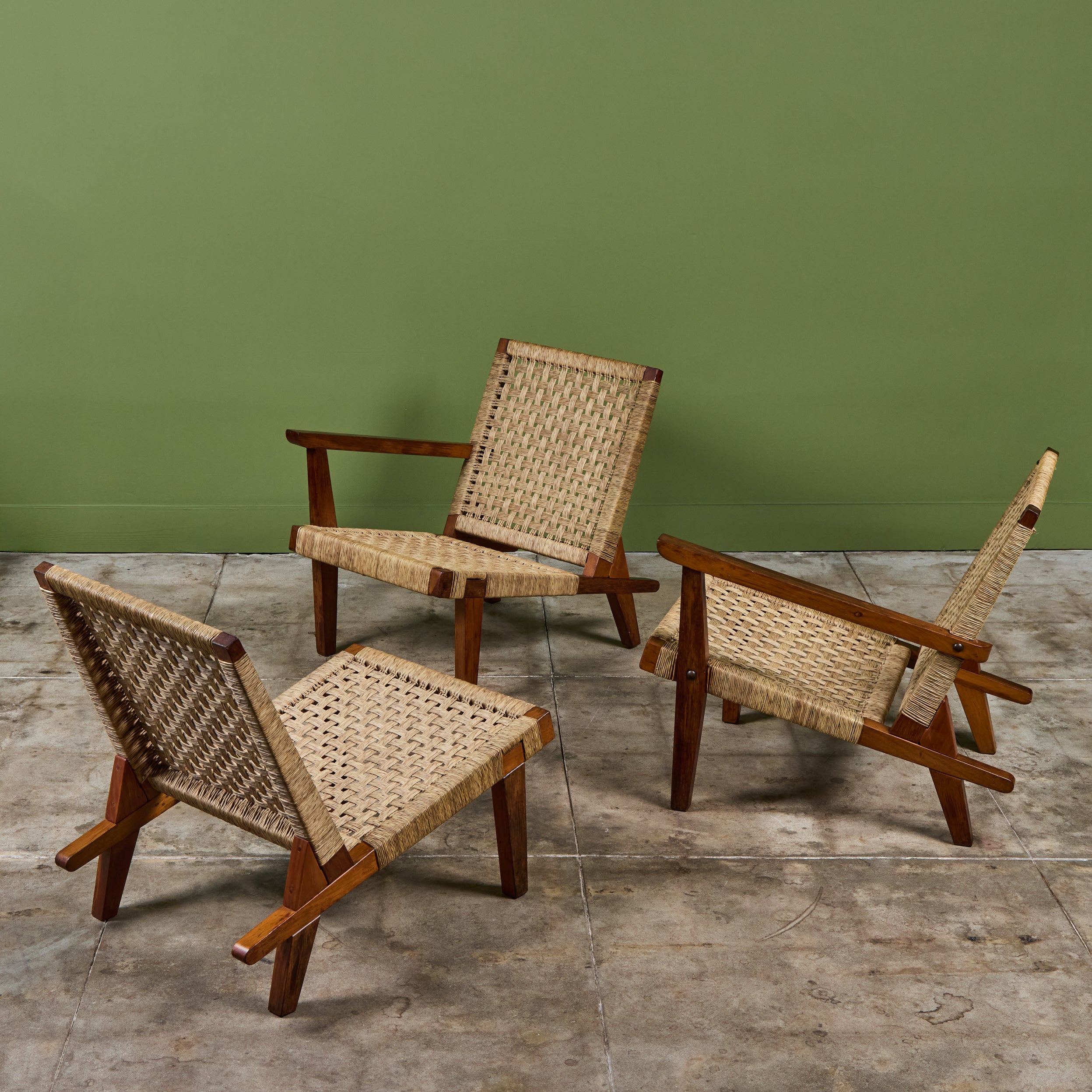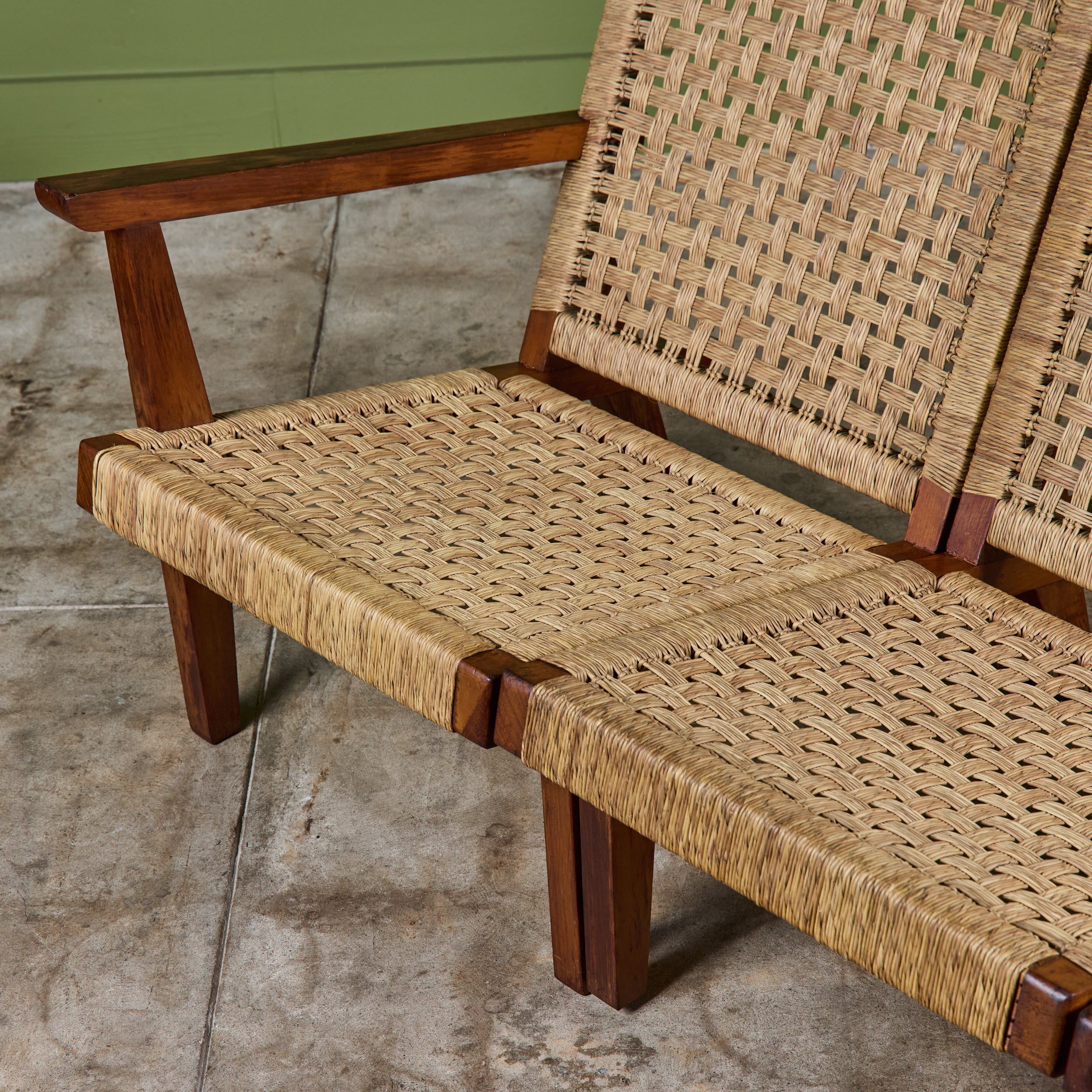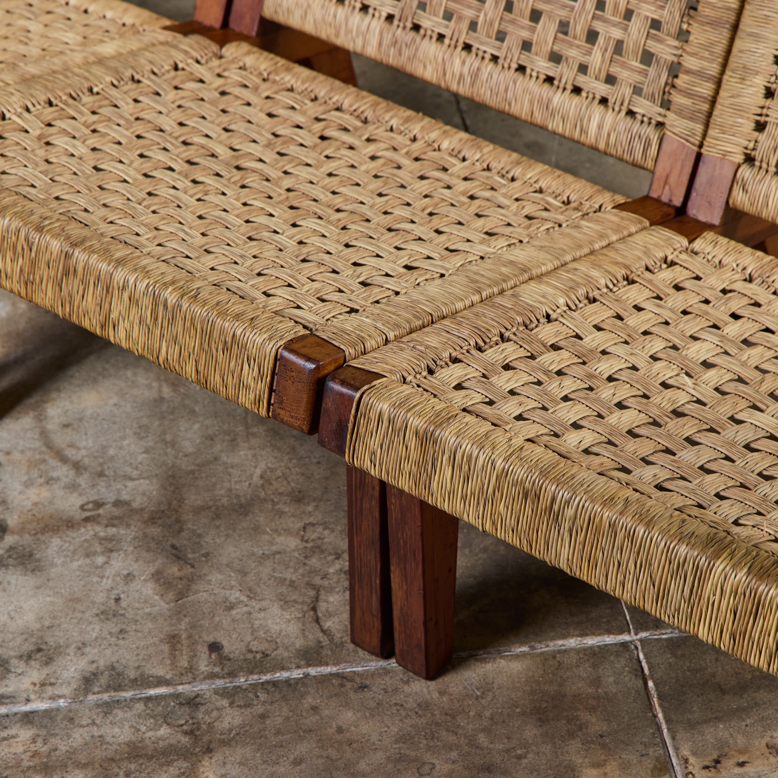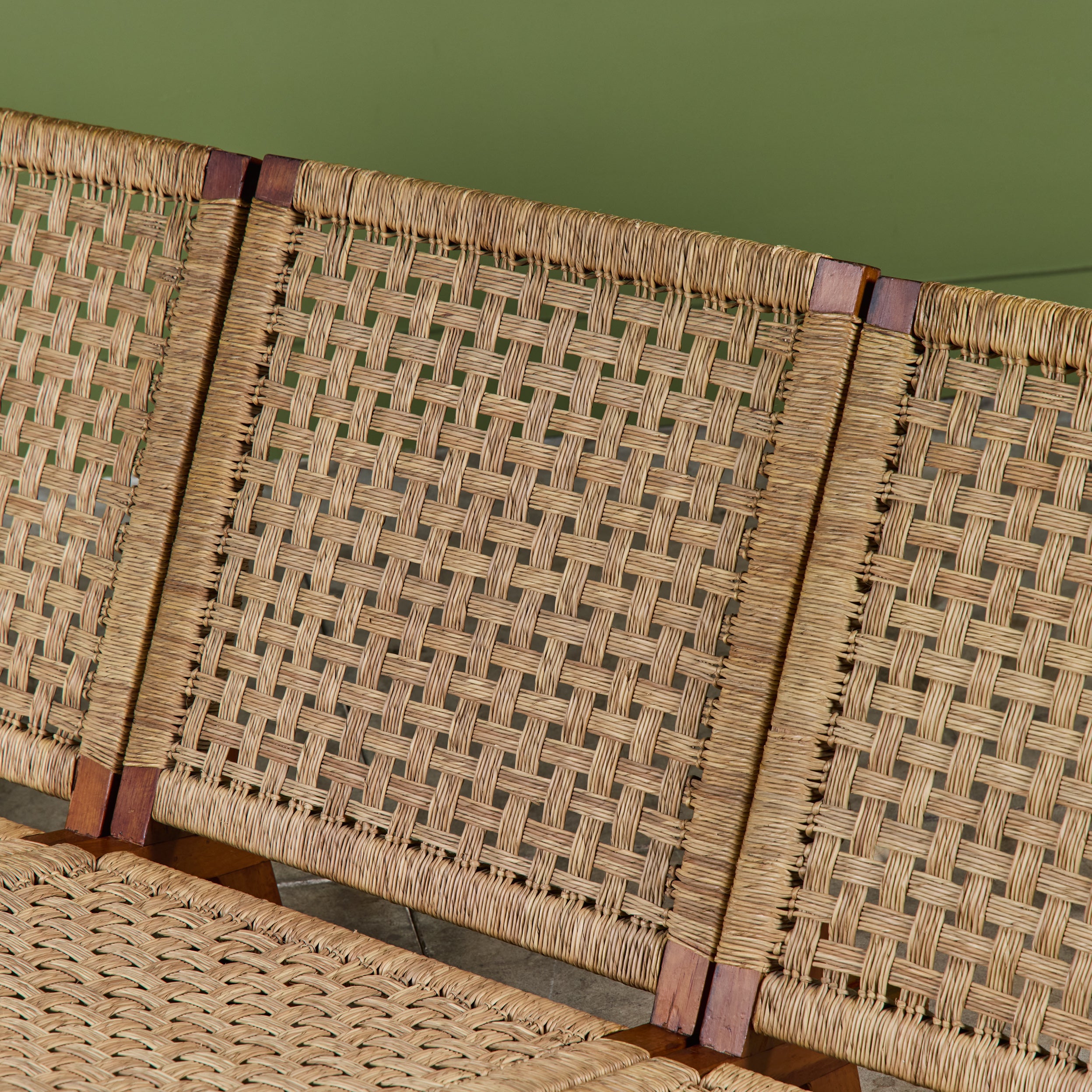 Bauhaus trained, Mexico City based designer, Michael Van Beuren created highly functional modern pieces inspired by Mexican vernacular styles and materials. This example, c.1950s Mexico has a pine frame with a woven rattan seat. The sofa is convertible as it can be used as a sofa, loveseat or separate chairs.