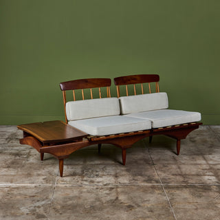 T.H. Robsjohn Gibbings Brass and Walnut Coffee Table with Glass Top for Widdicomb