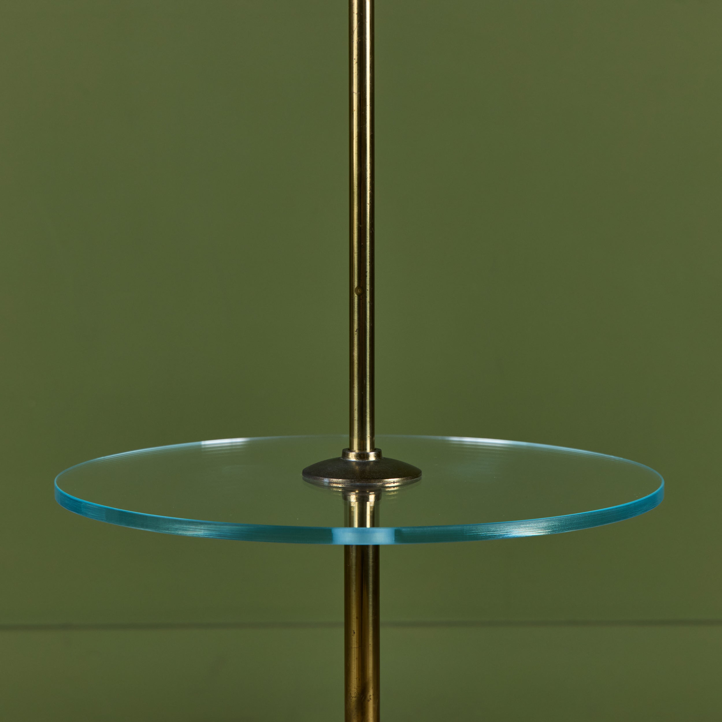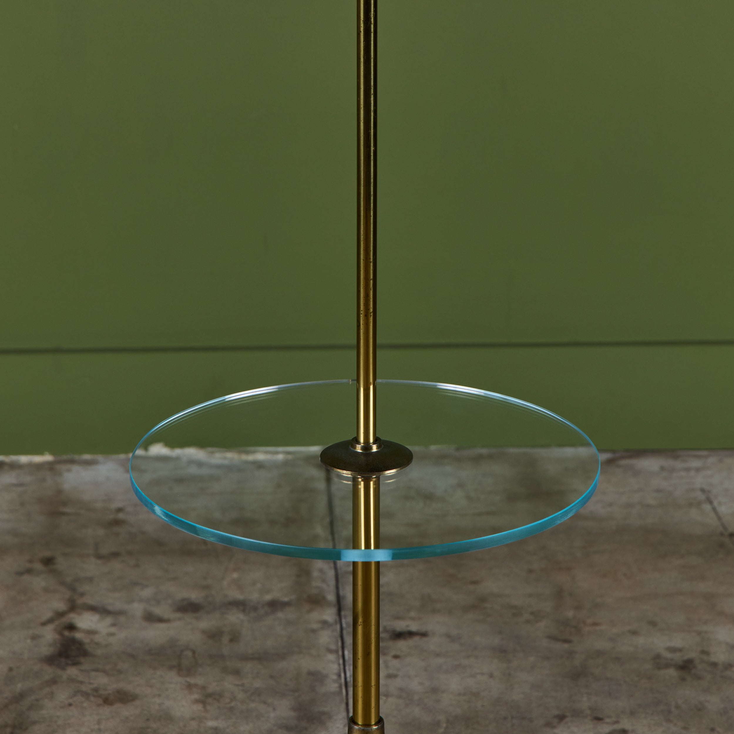 Stiffel Double Shade Brass Floor Lamp with Attached Glass Side Table