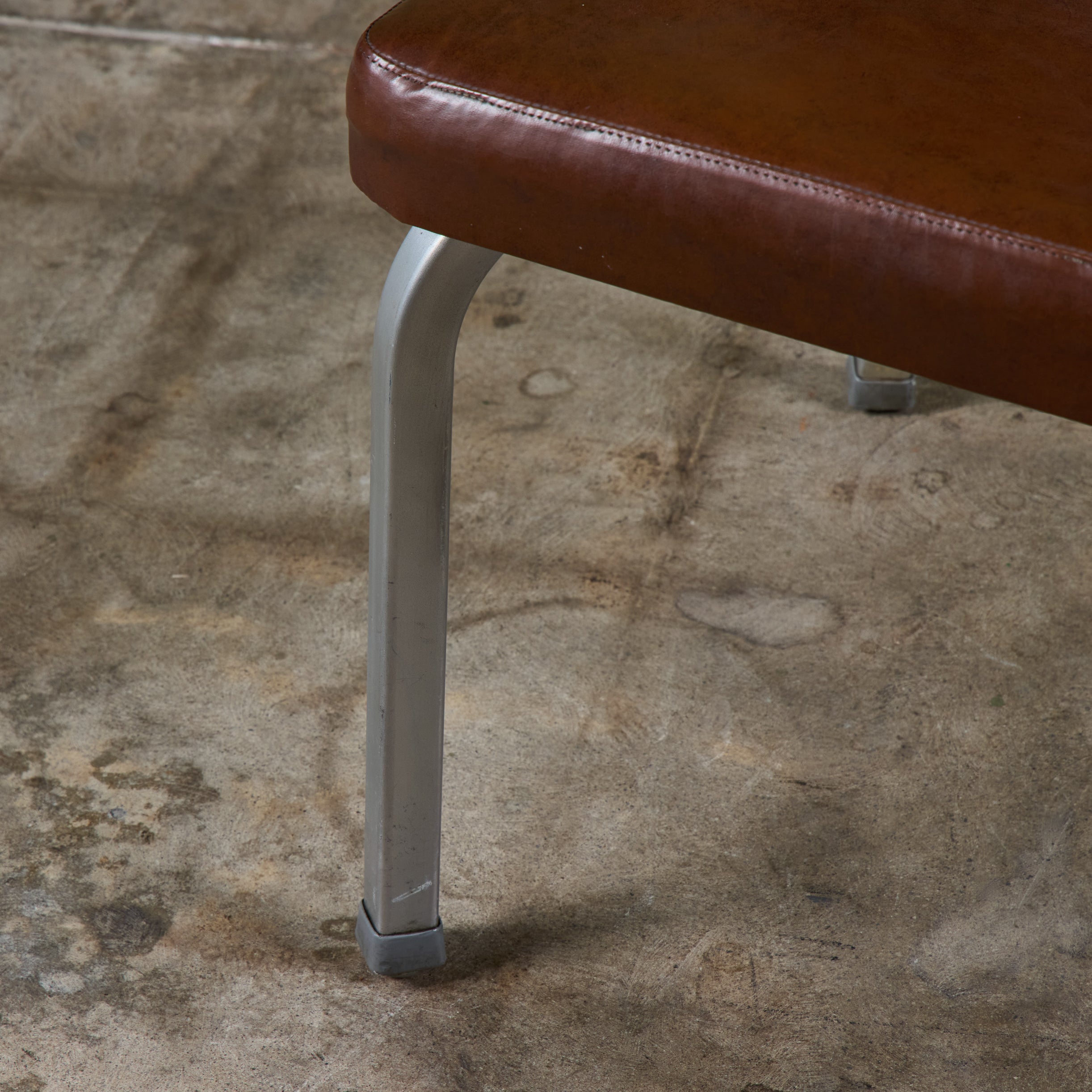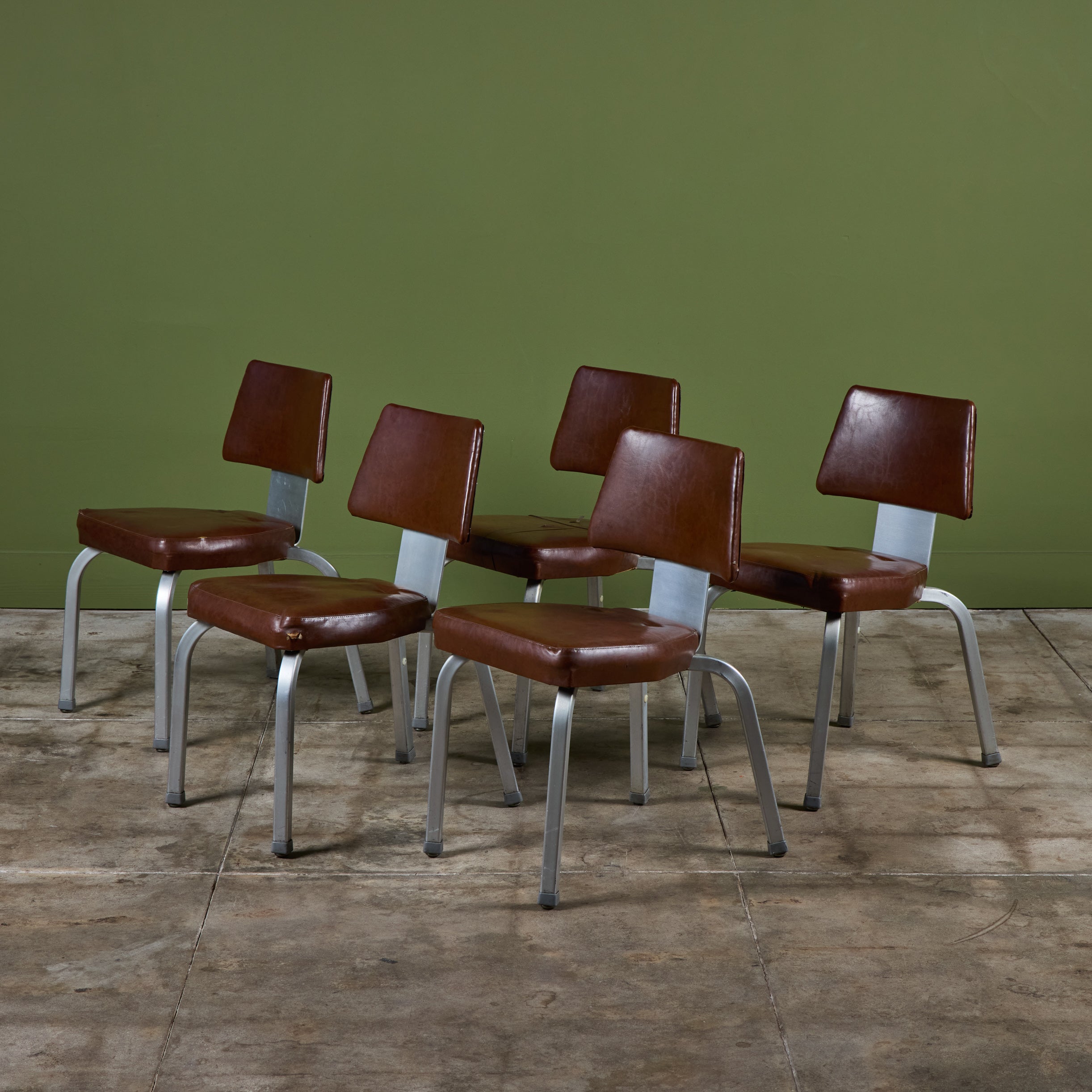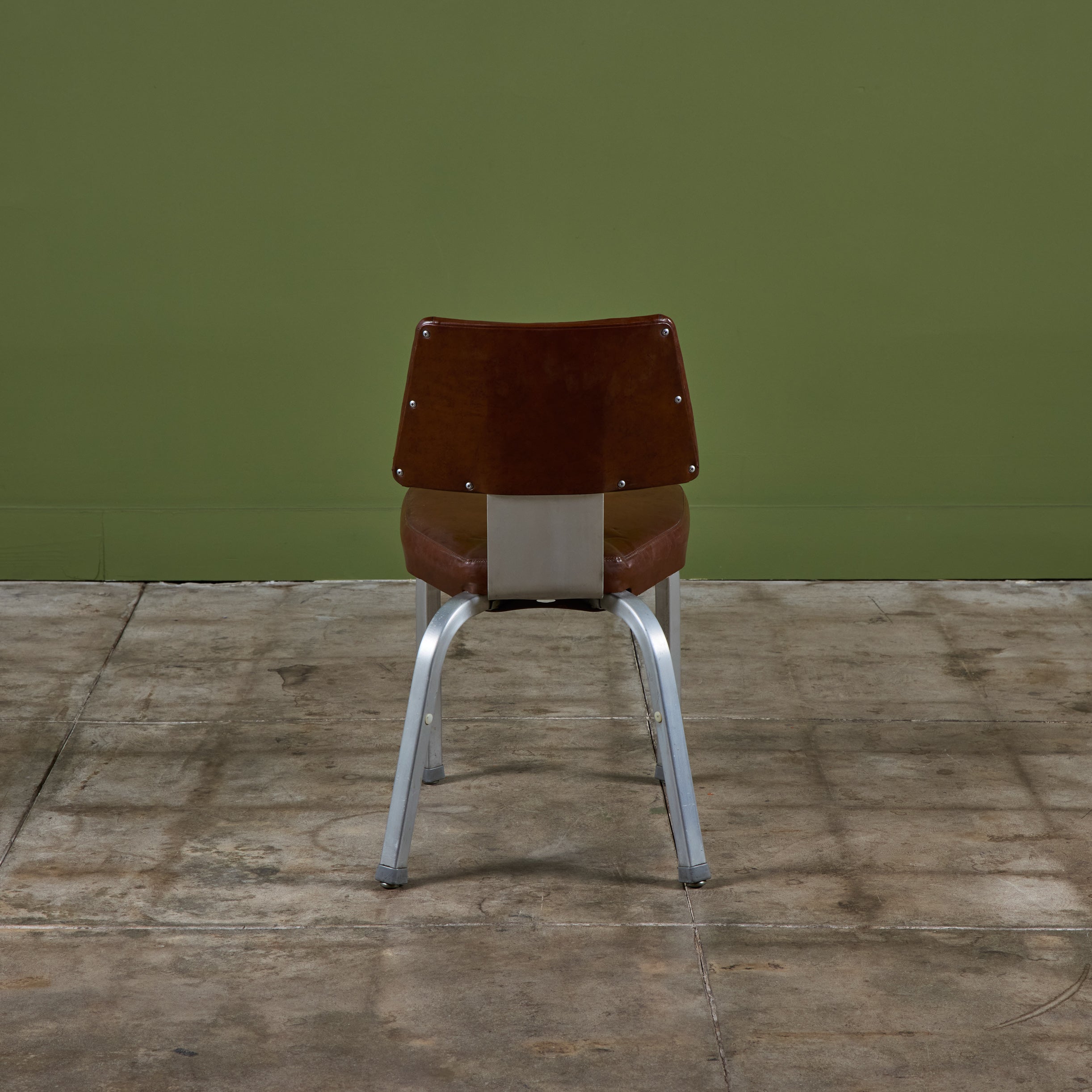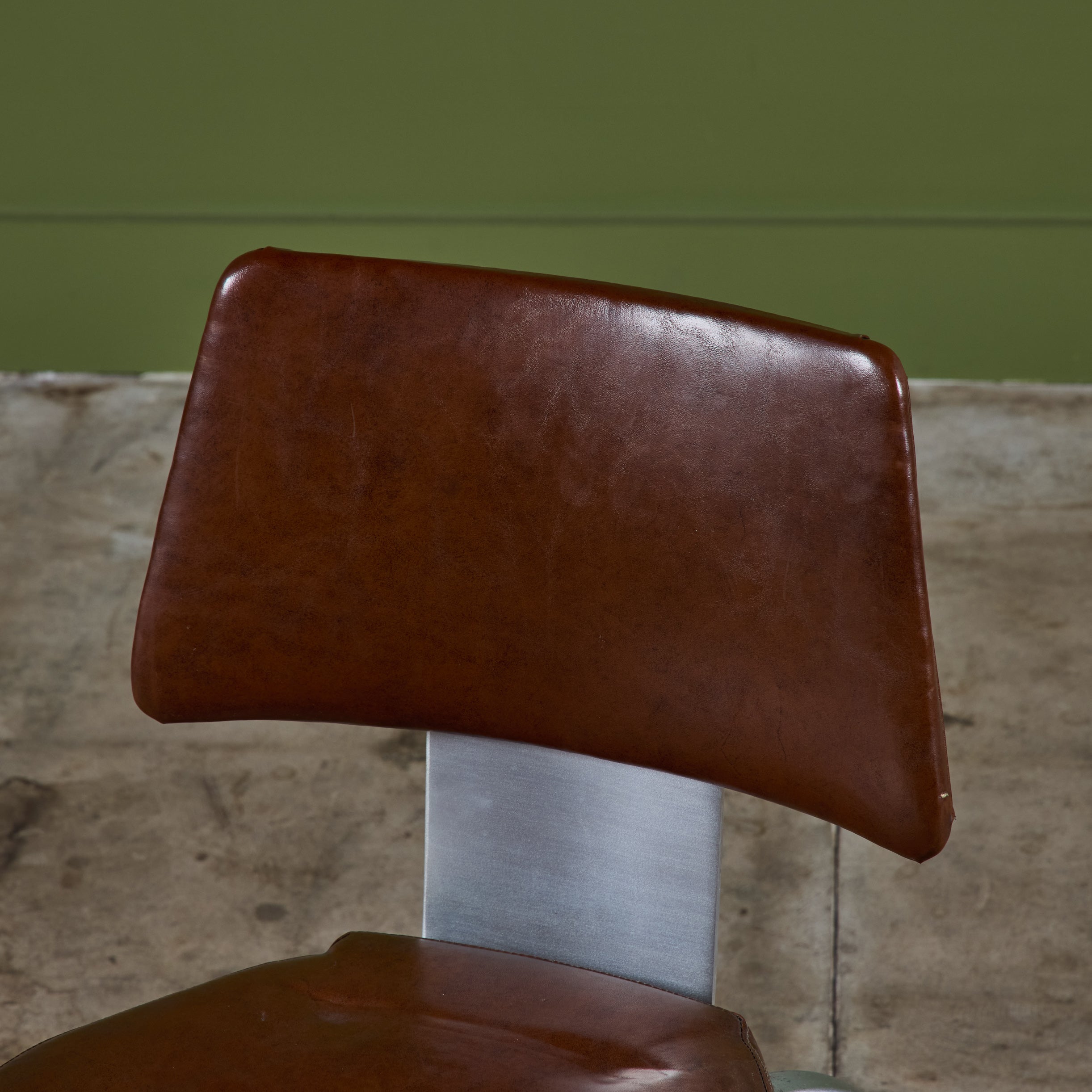 1930's art deco folding chair by Warren McArthur. The chair features a tubular aluminum frame with green fabric upholstered seat and seat back. The armrests are wrapped in a green naugahyde. Each seat back features a fun ashtray, a reminder of the time in which they first lived.
