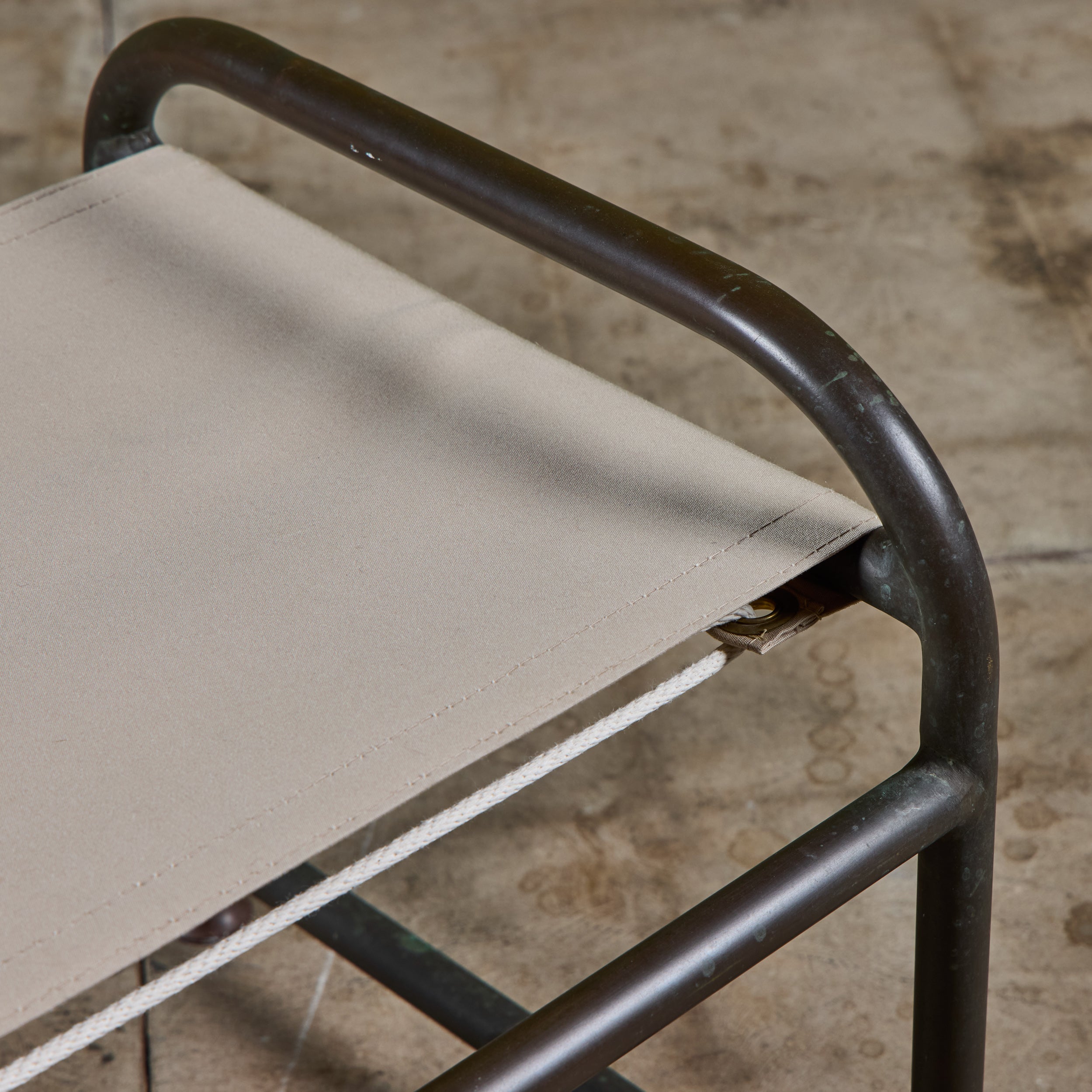 Excellent vintage condition; bronze has been cleaned and carries an age-appropriate patina. Canvas and rope ties replaced in the last 10 years in accordance to the original design.