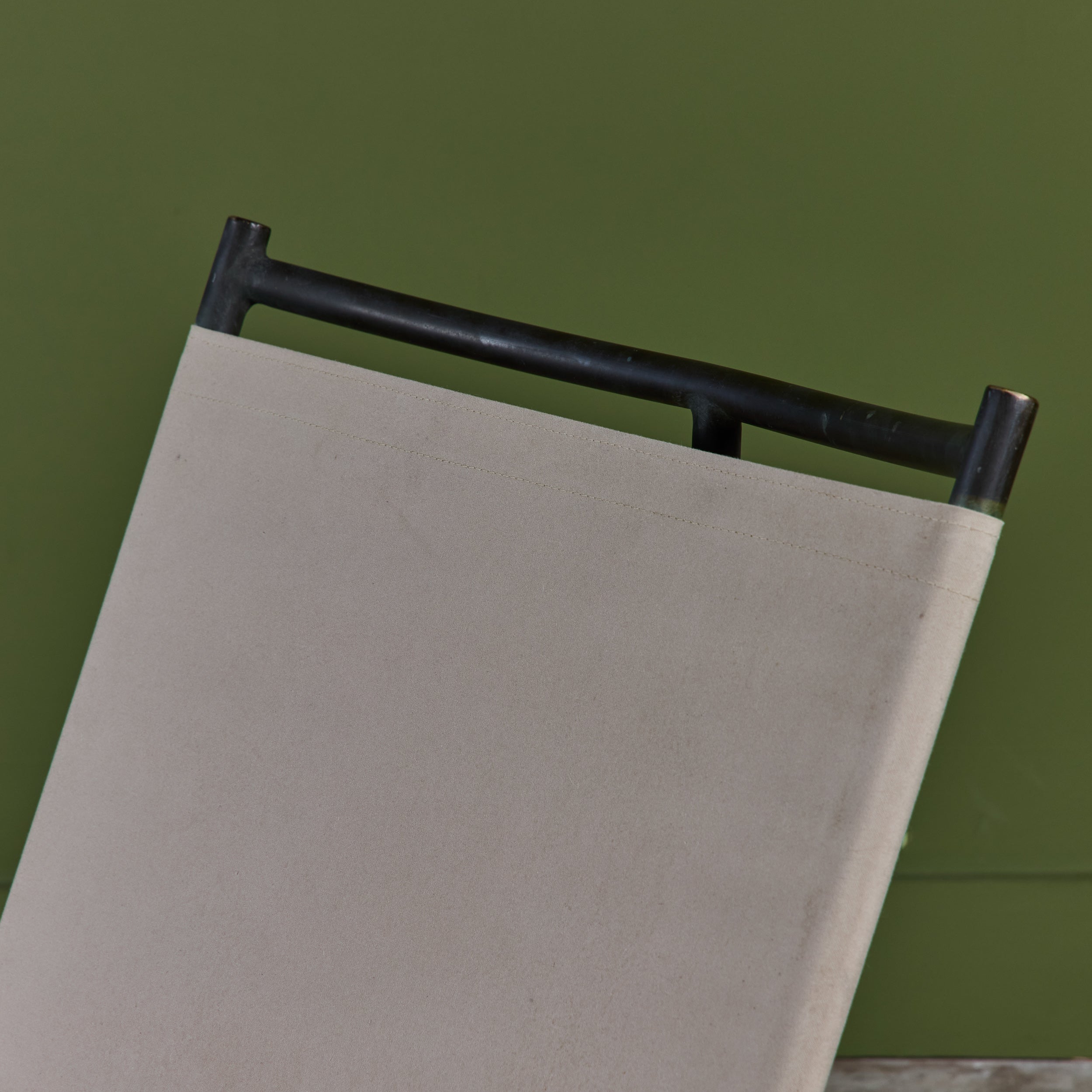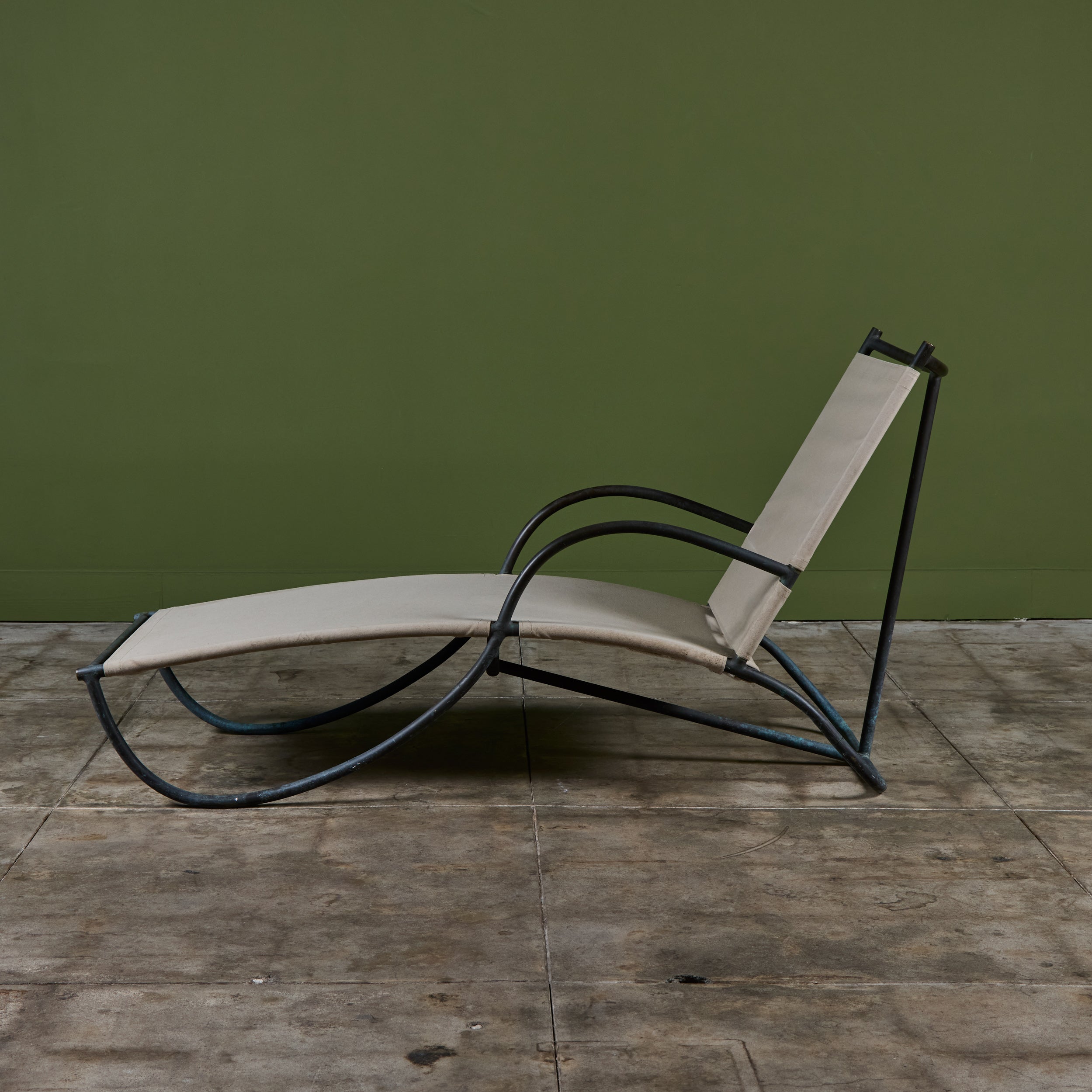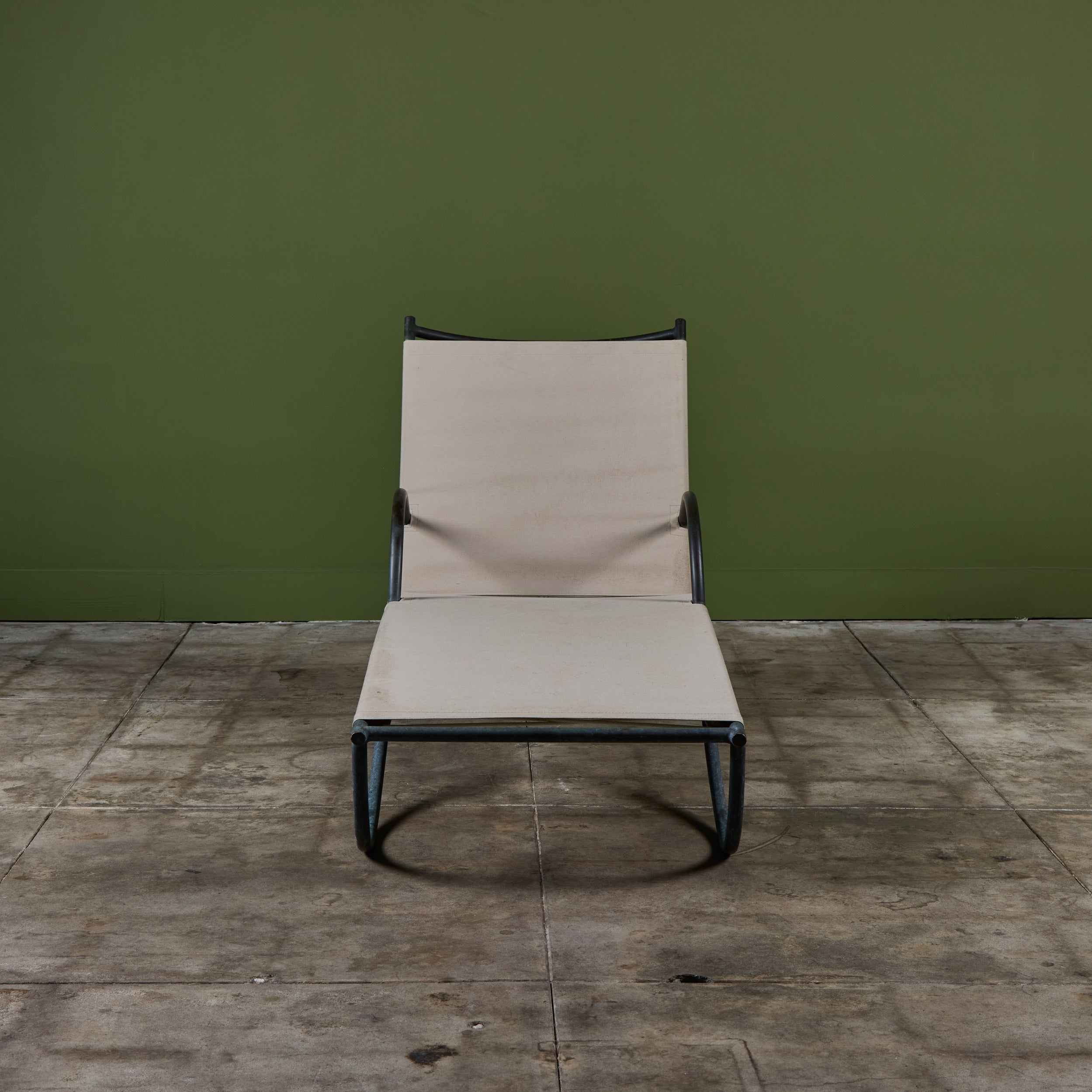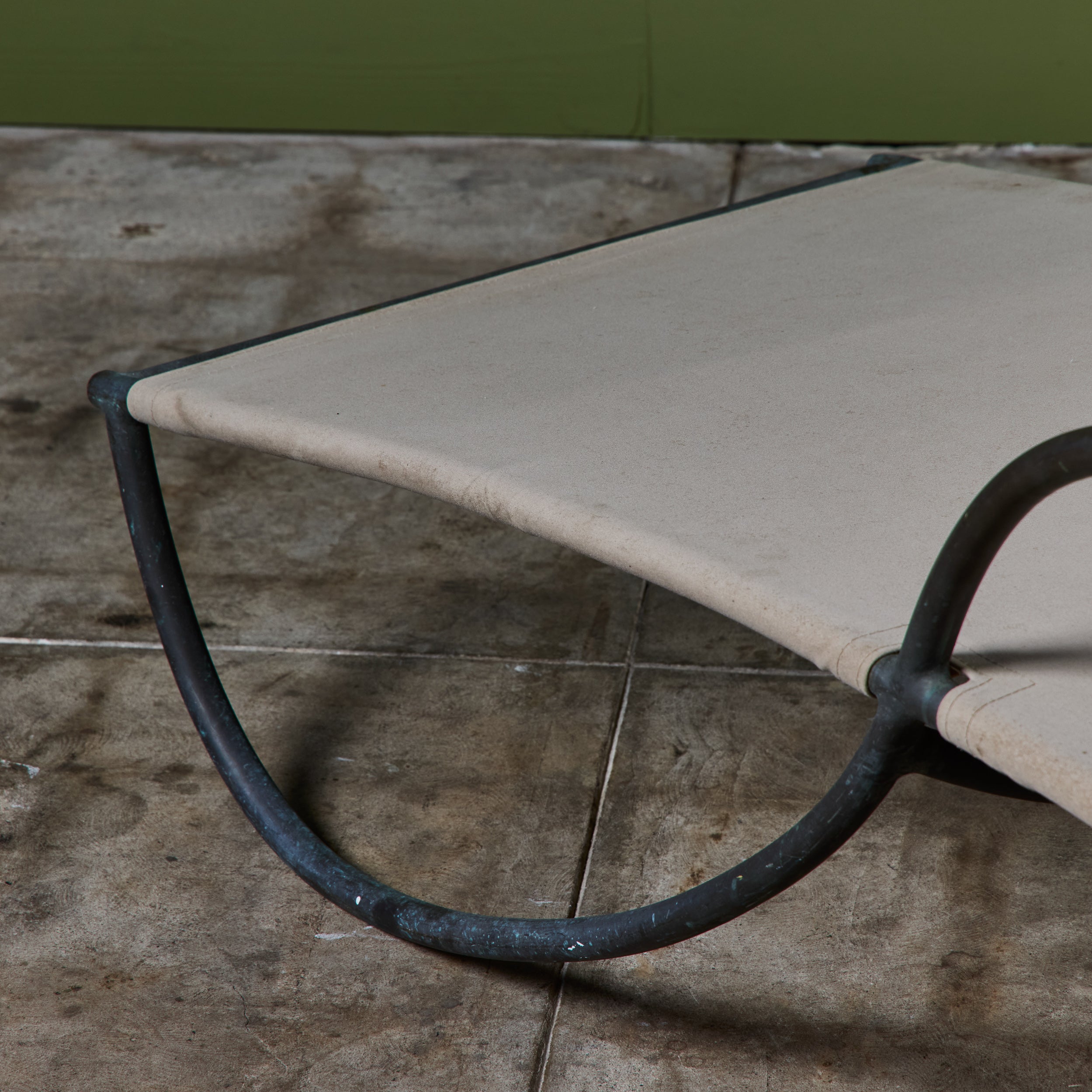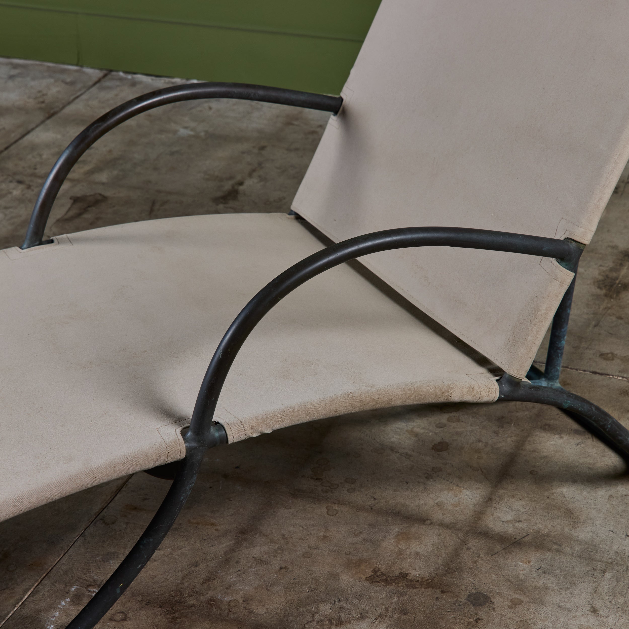 Early Walter Lamb Bronze & Canvas Patio Chaise Lounge