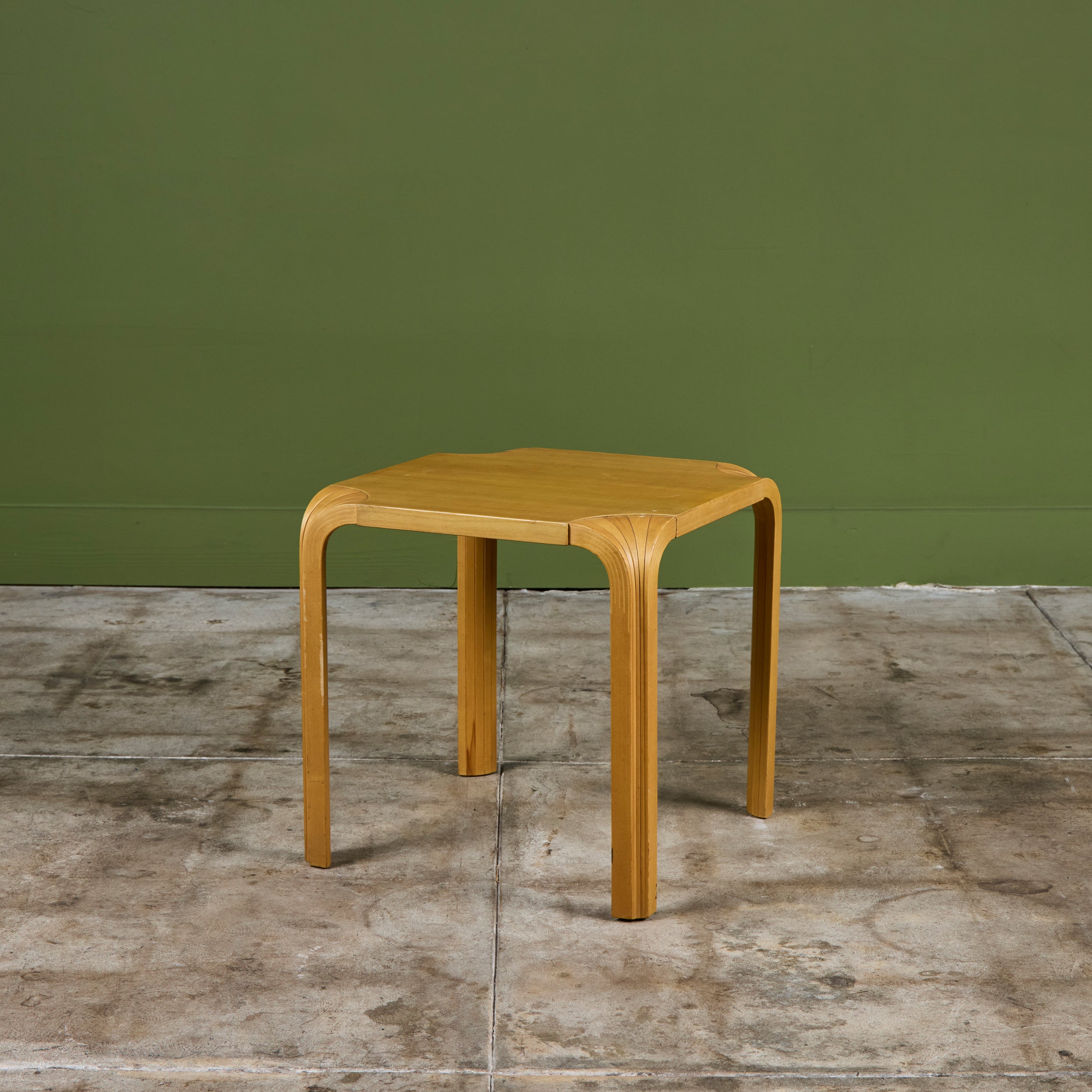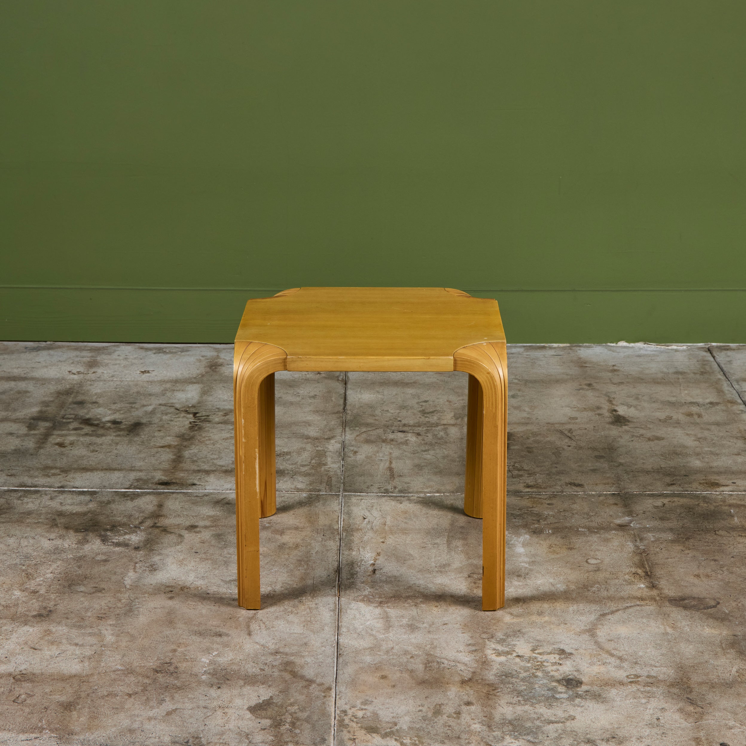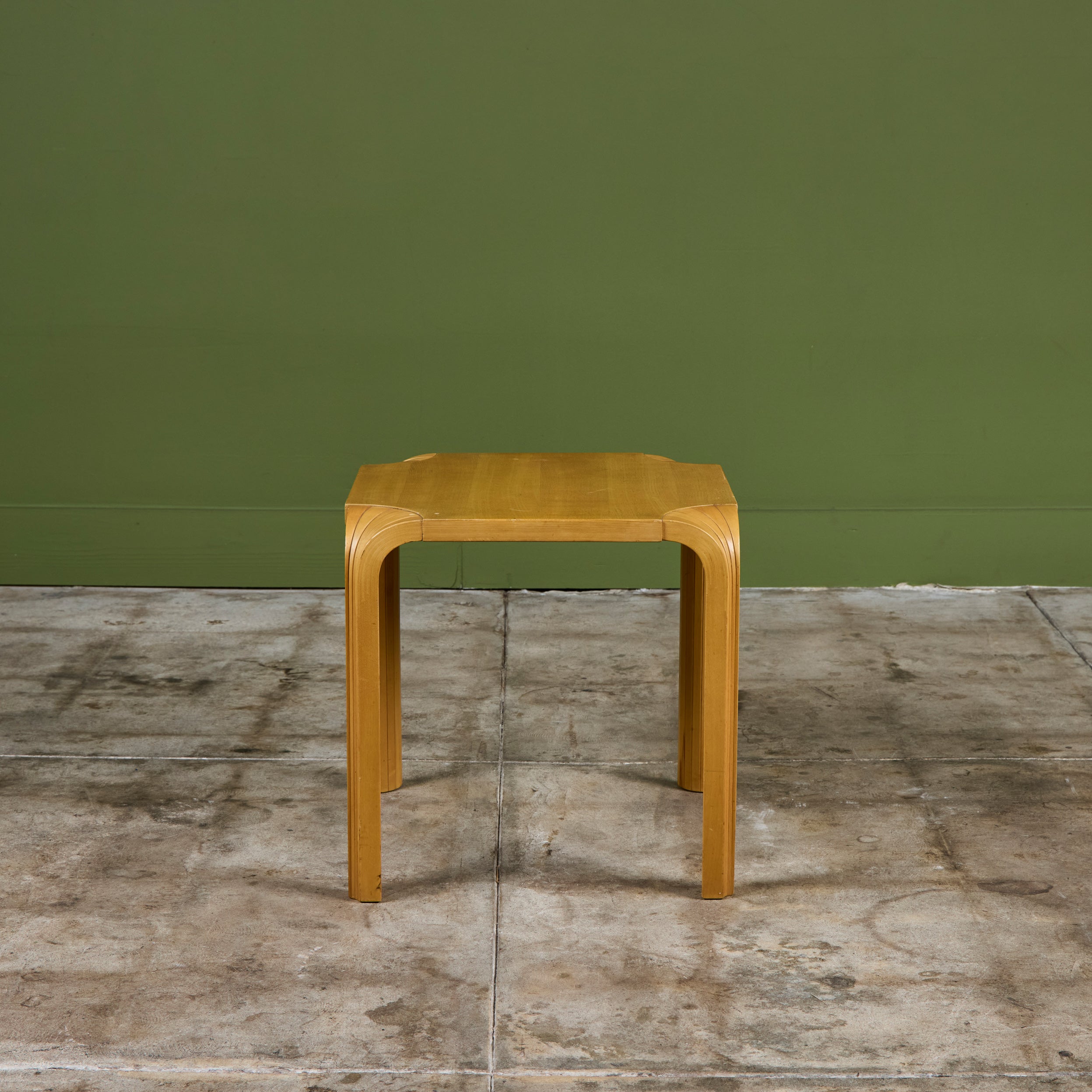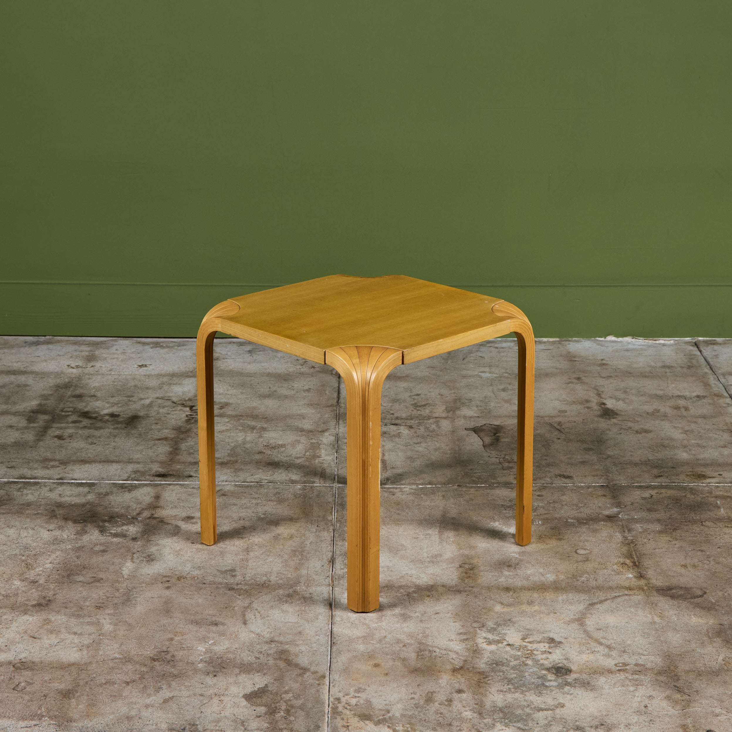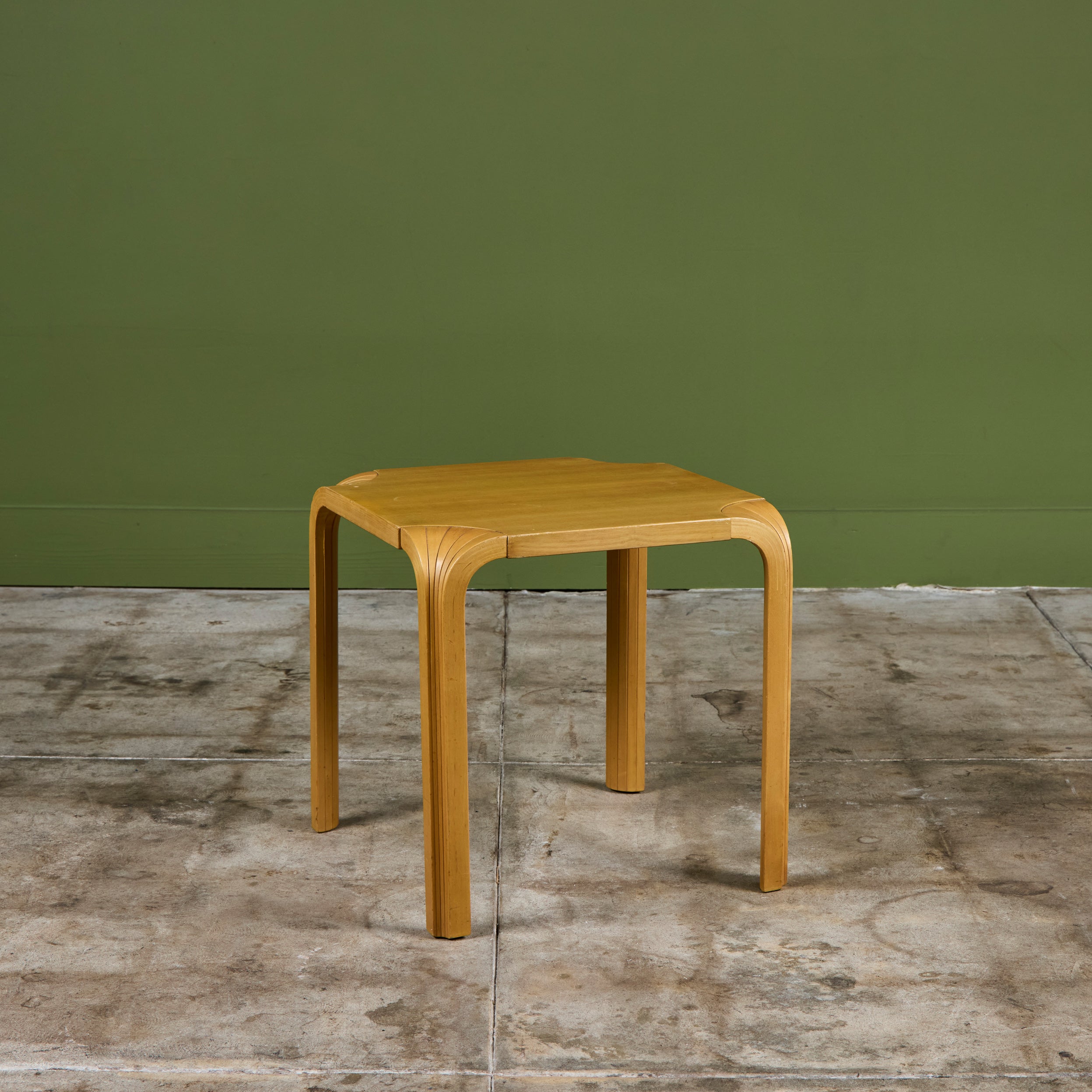 Originally designed in 1954, the "Fan Leg" side table by Alvar Aalto for Artek, Finland, c.1970s. The table features a birch frame with Aalto's signature "Fan Leg" detail.