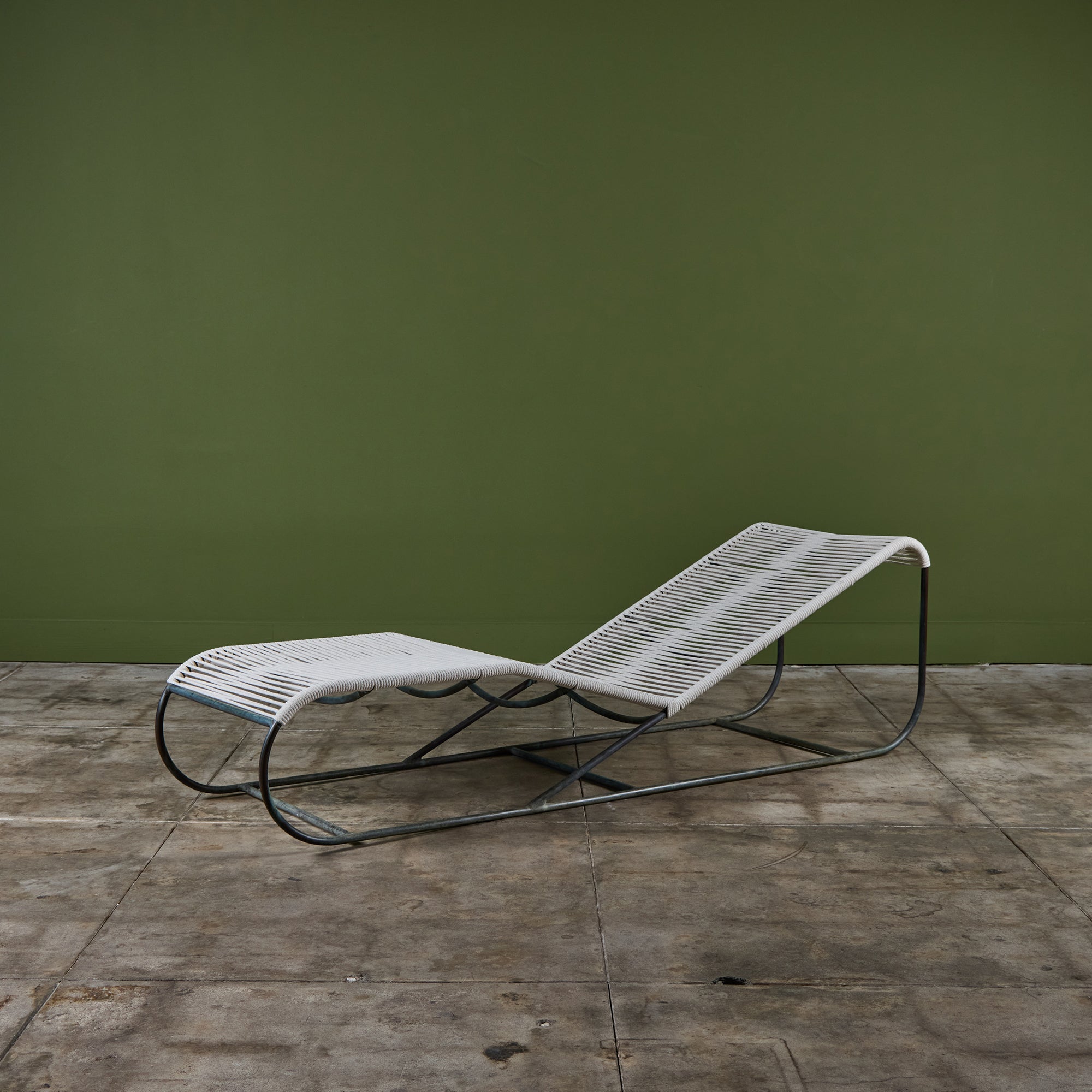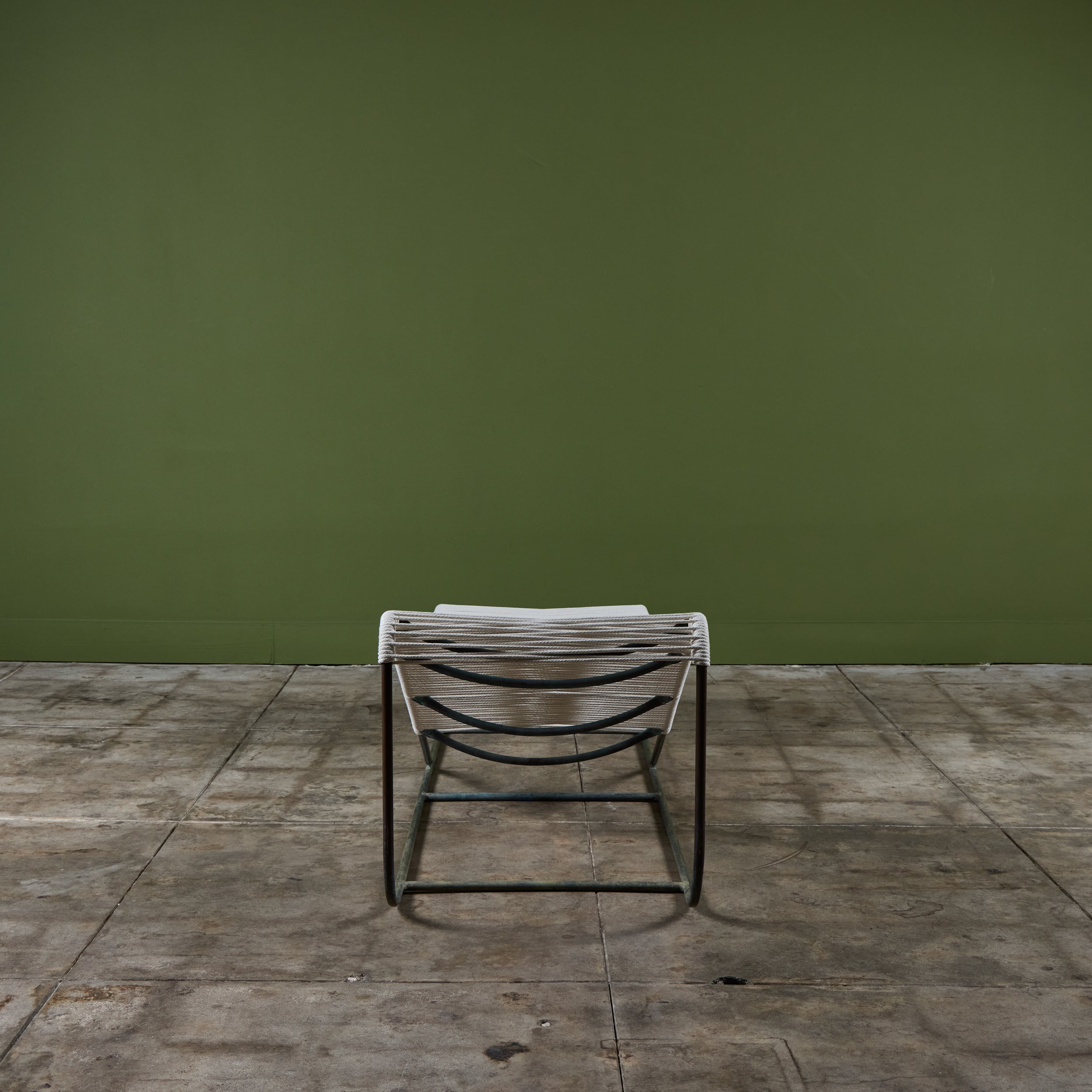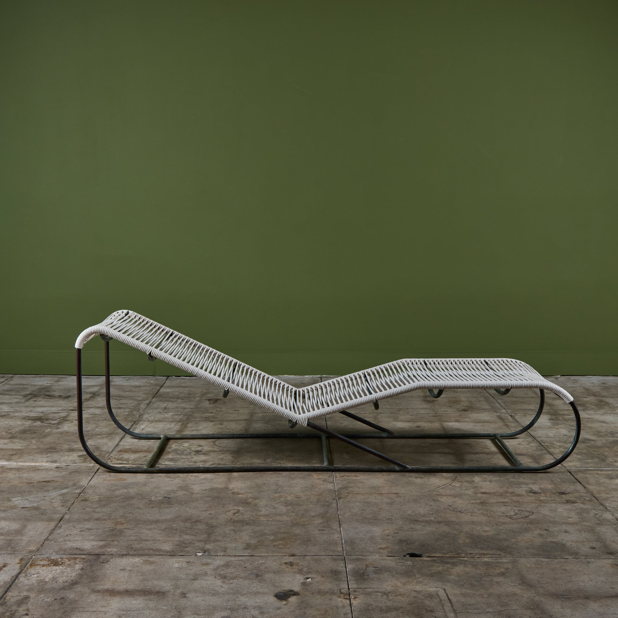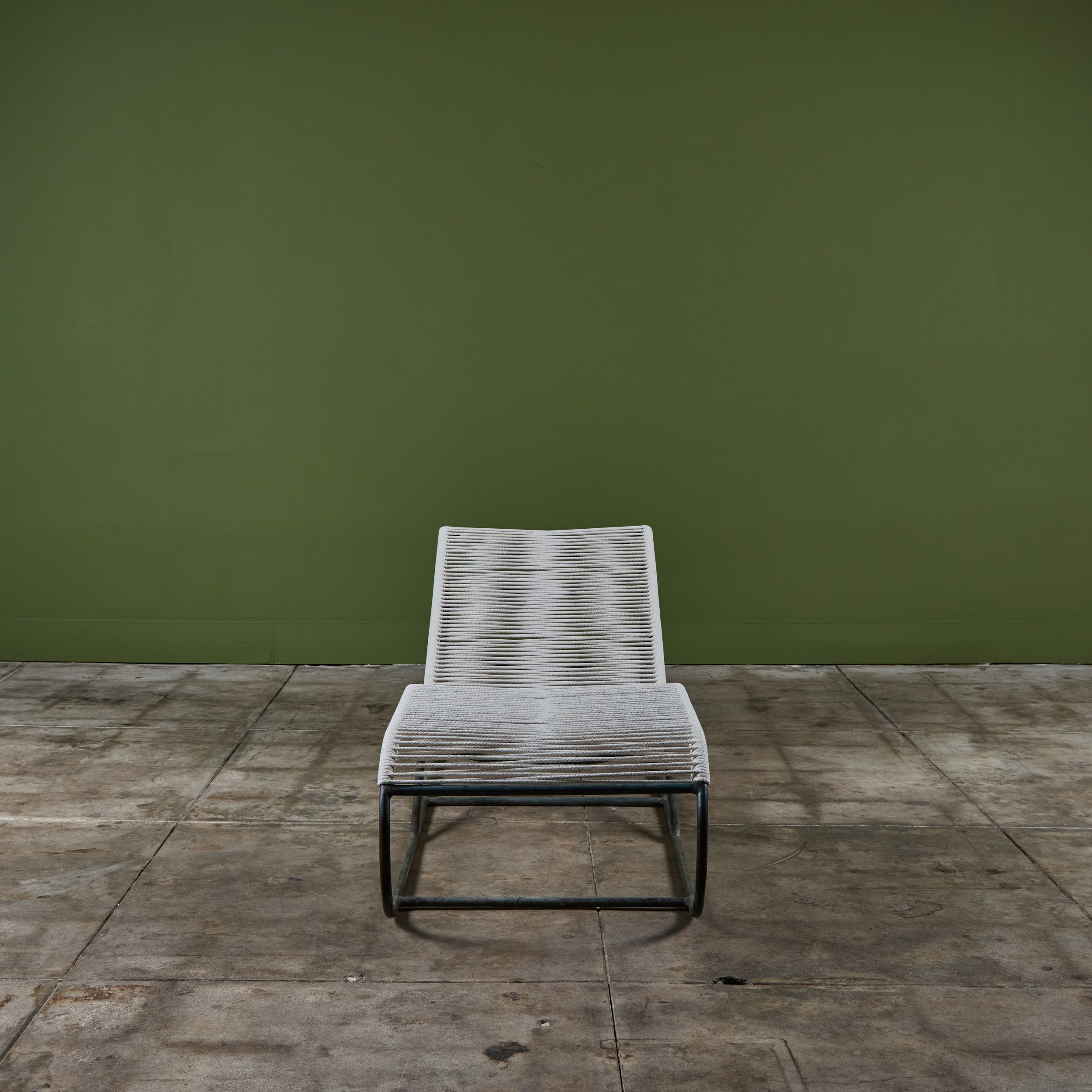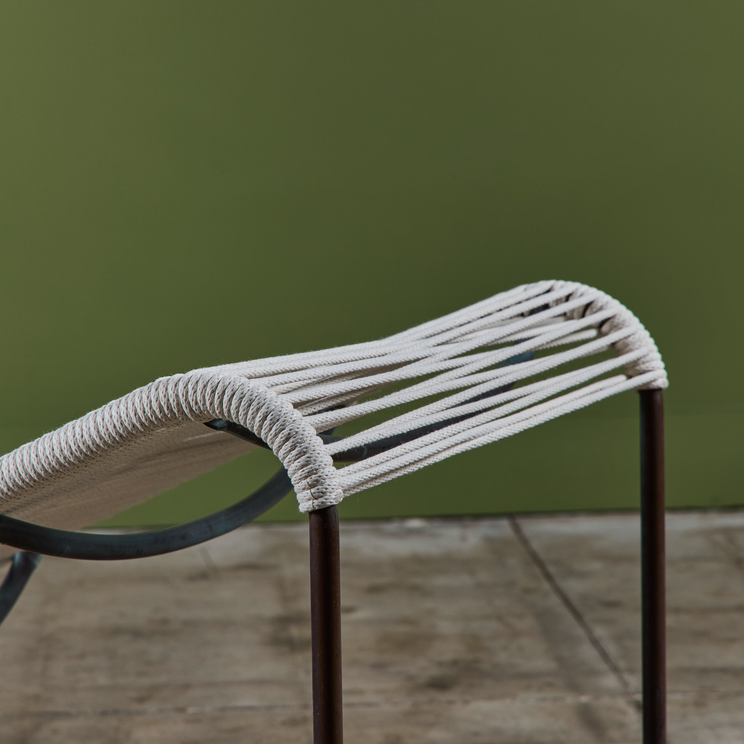 Chaise lounge chair by Kipp Stewart for Terra of California, USA, c.1970s. The chaise features a patinated bronze tube frame with new cotton rope that has been woven to the same pattern and specifications as was originally done on the chaise when it was originally produced.