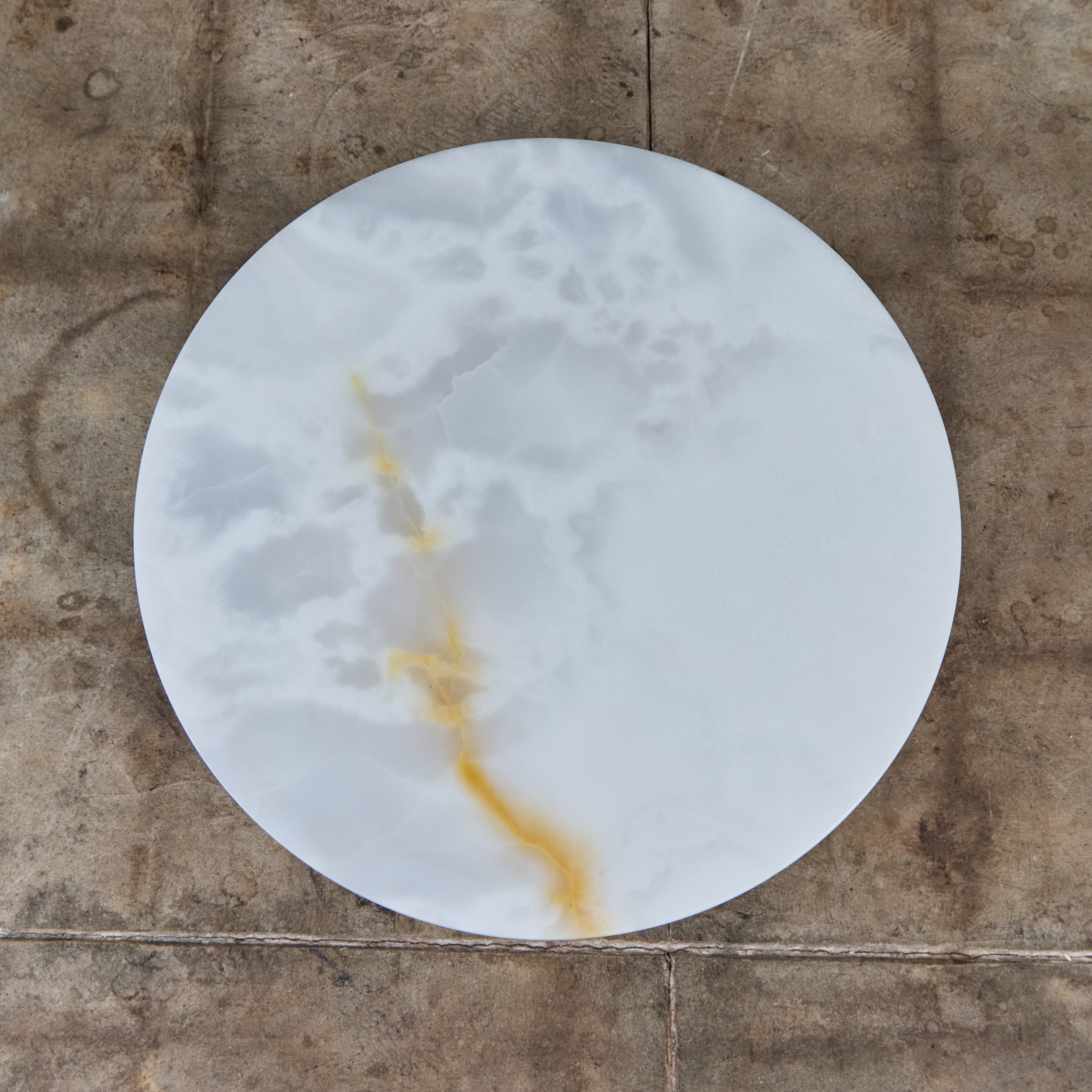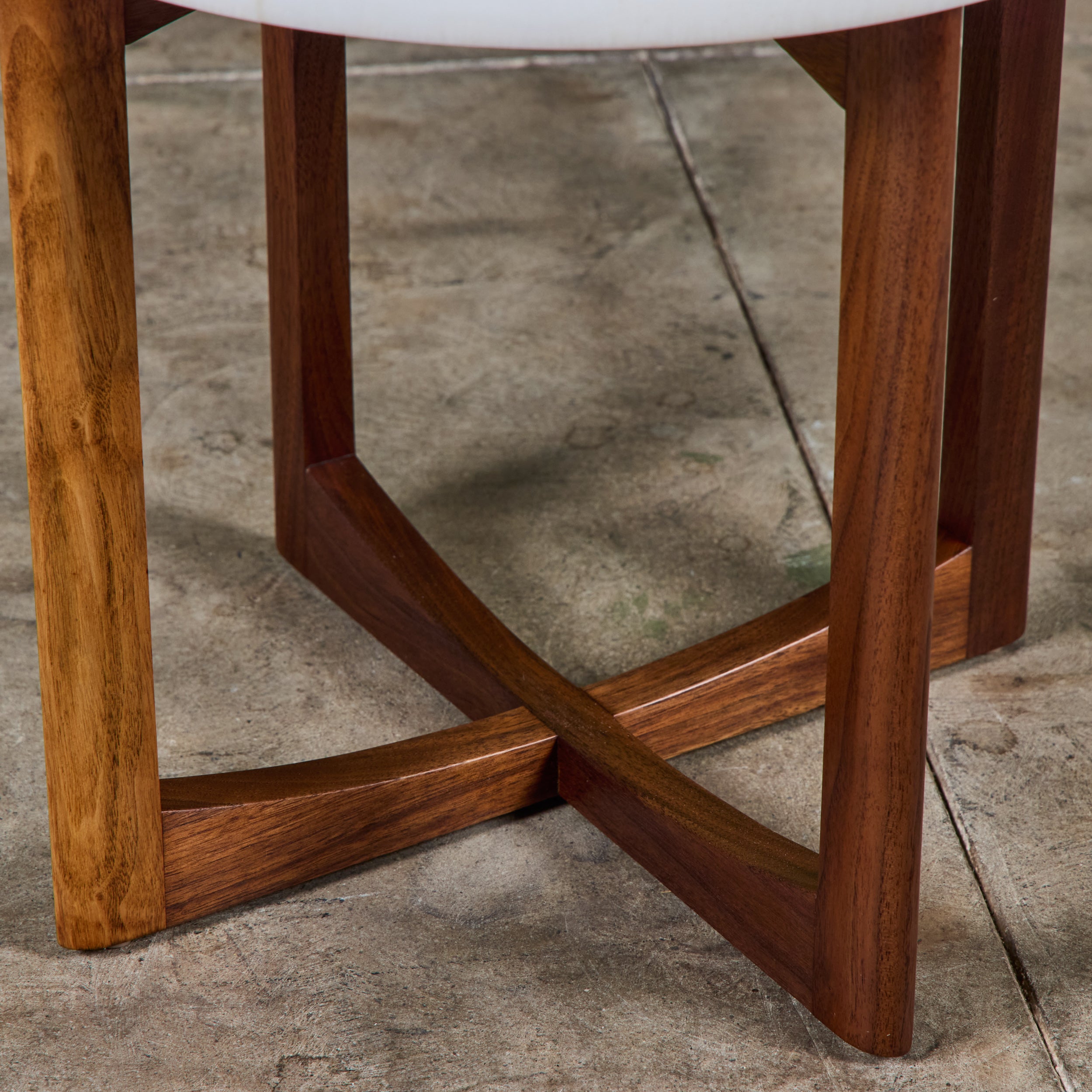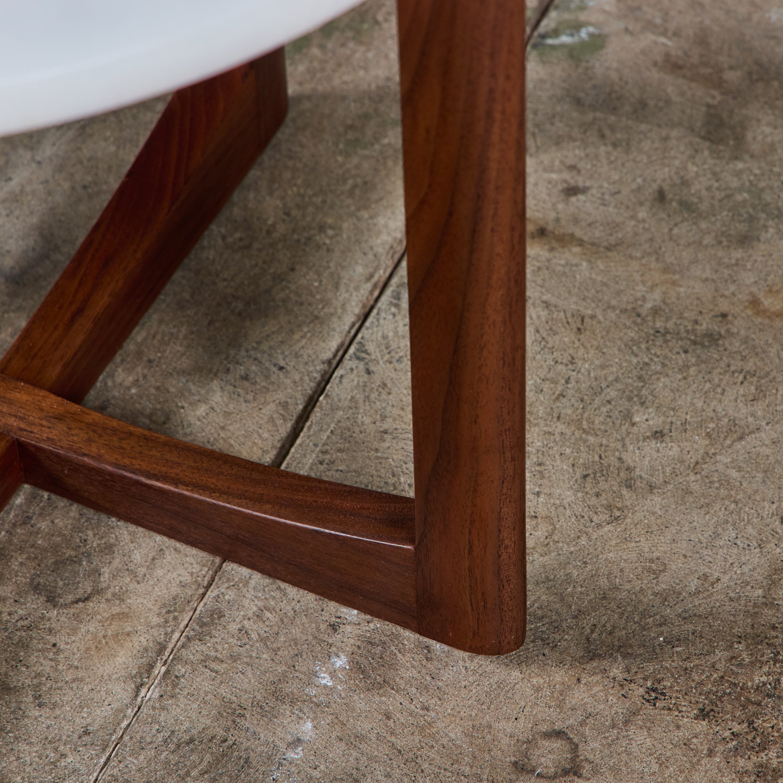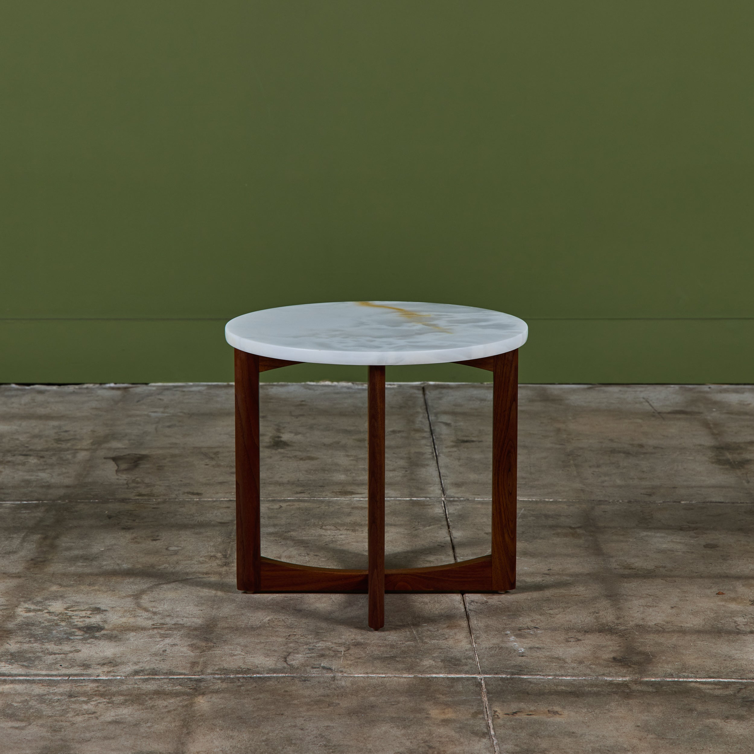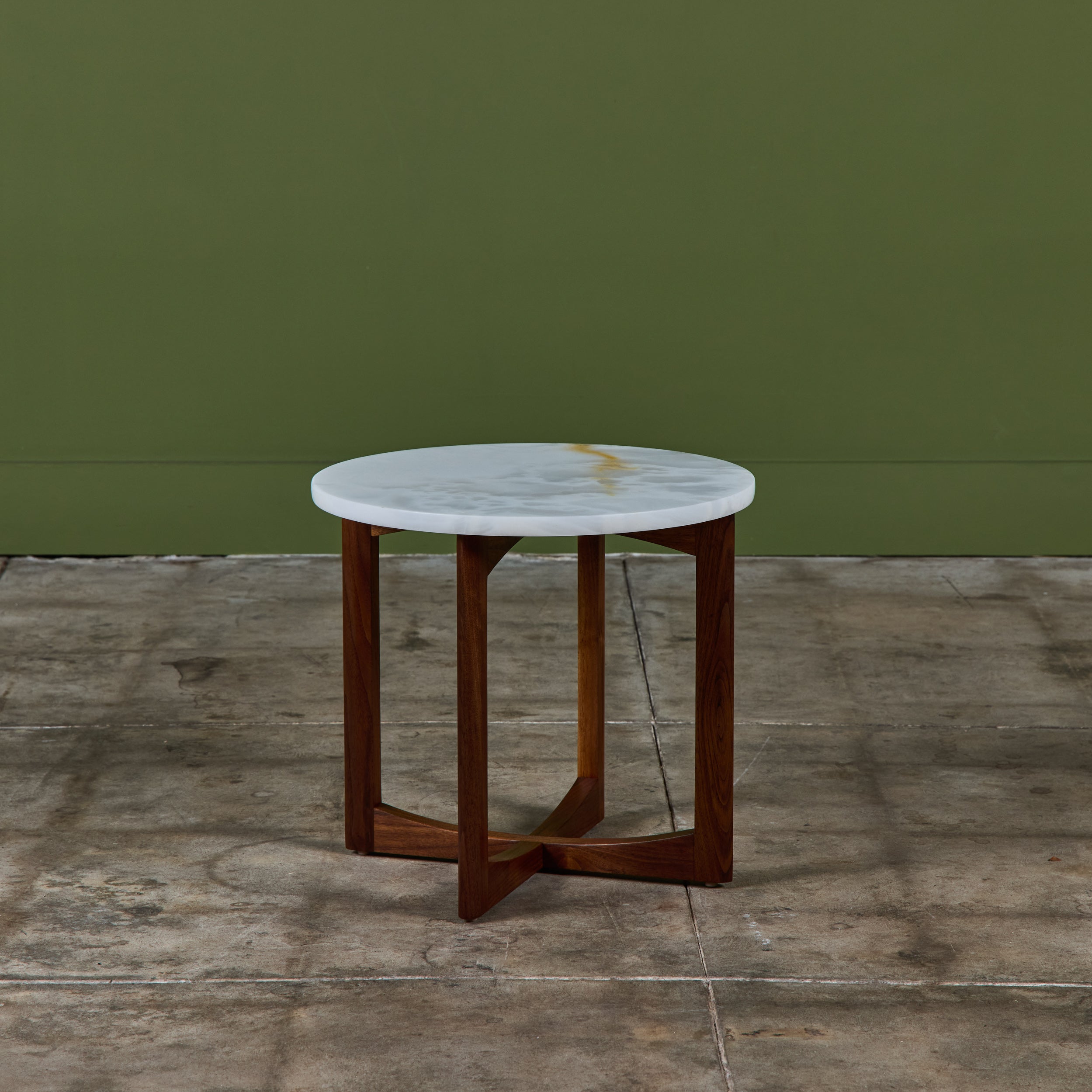 Adrian Pearsall for Craft Associates c.1960s, USA. This side table features a round alabaster table top and beautifully refinished walnut base. The combination of the two elements makes for a striking design.