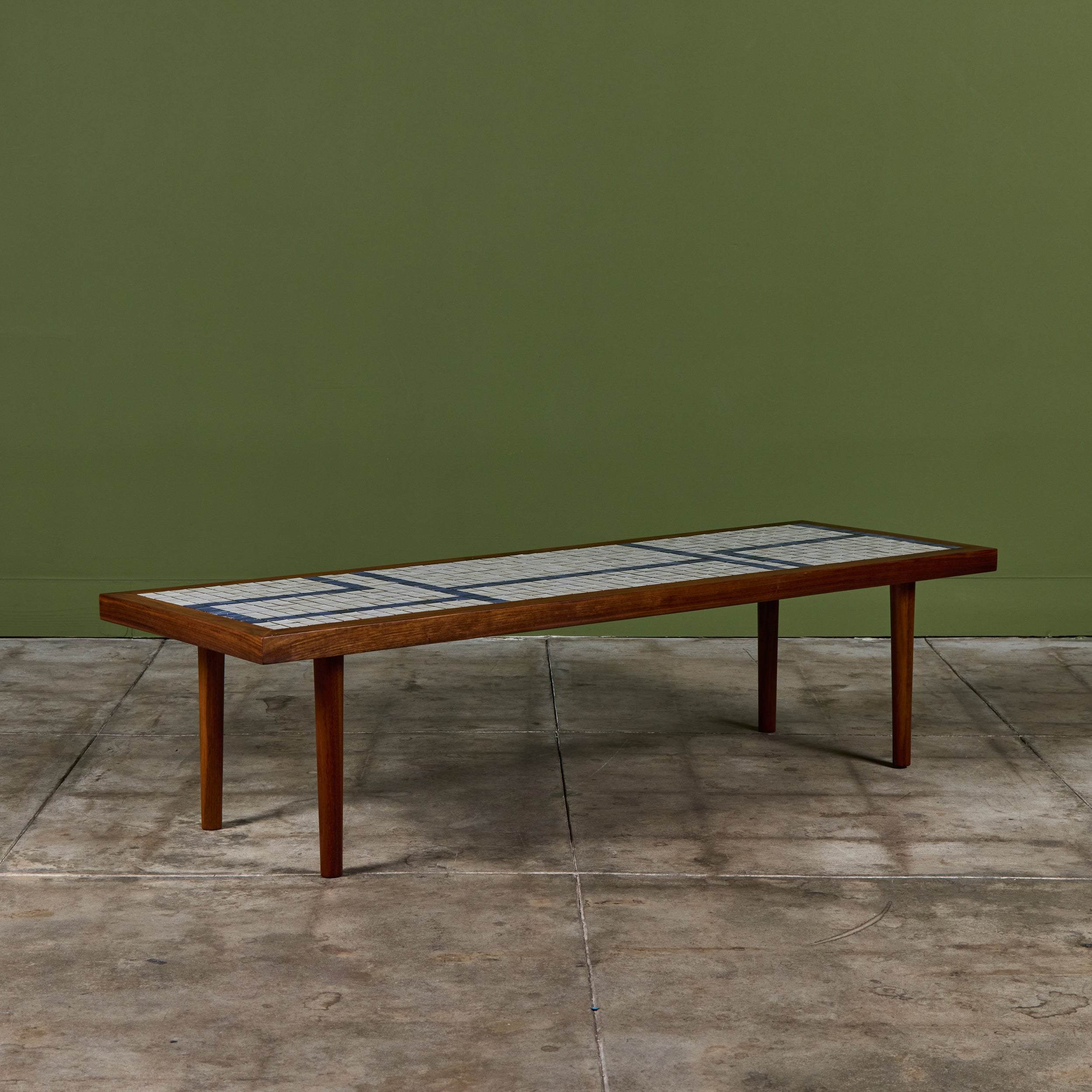 Gordon and Jane Martz Rectangular Coffee Table with Blue and White Tile Inlay