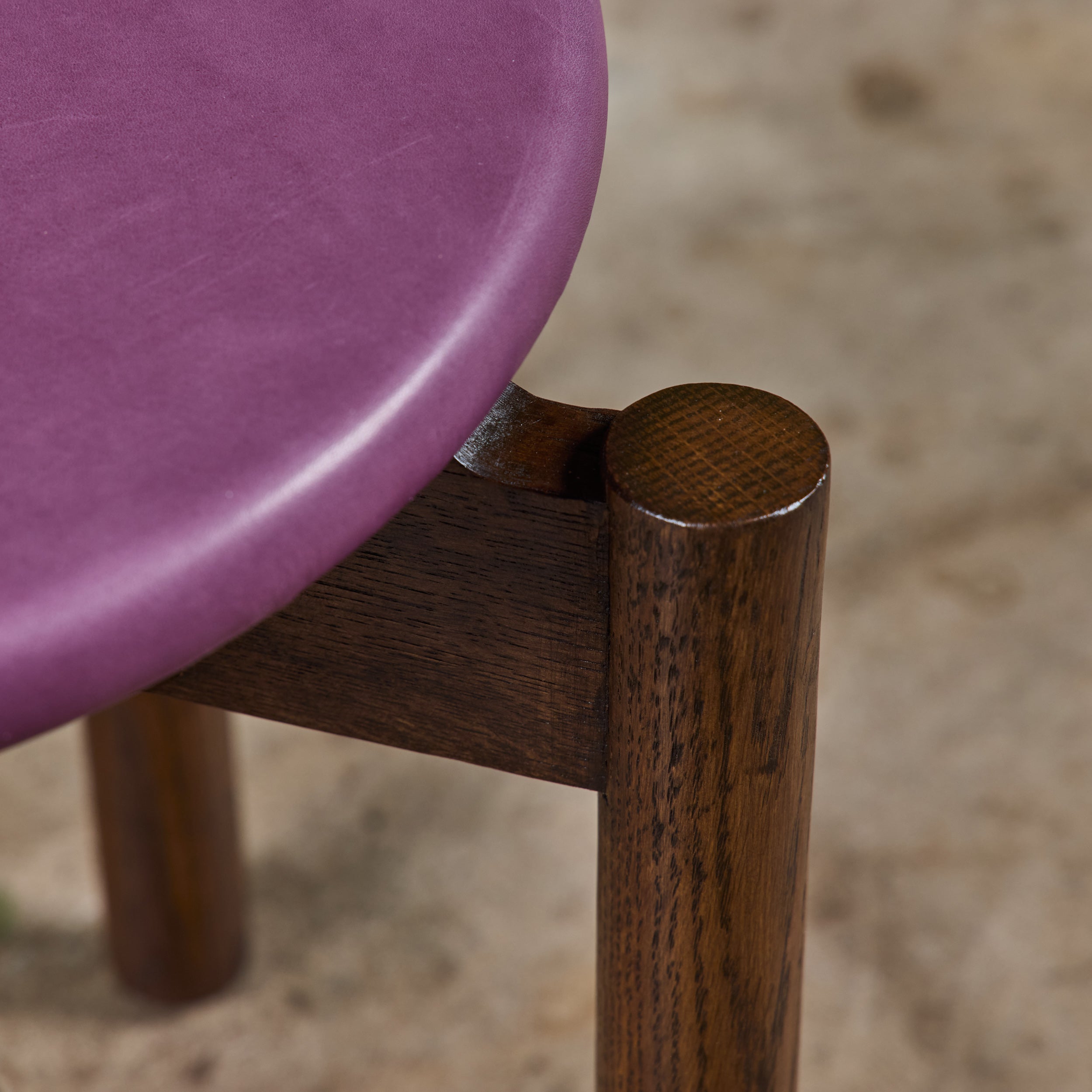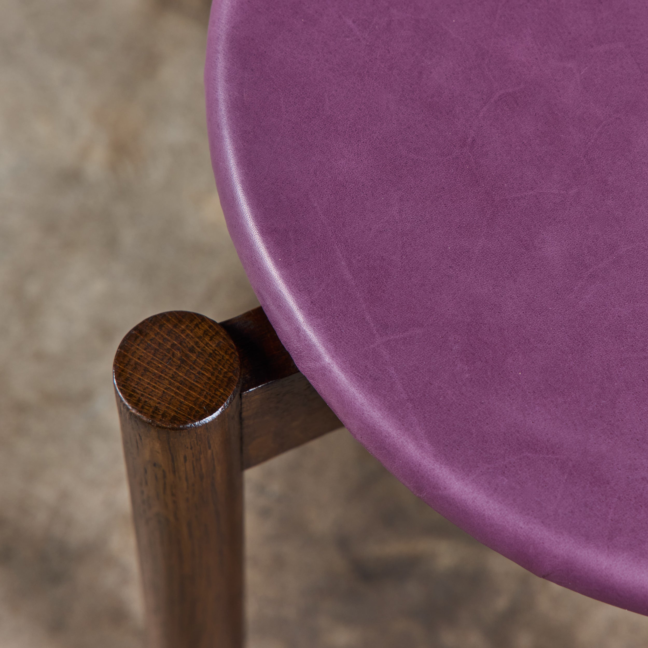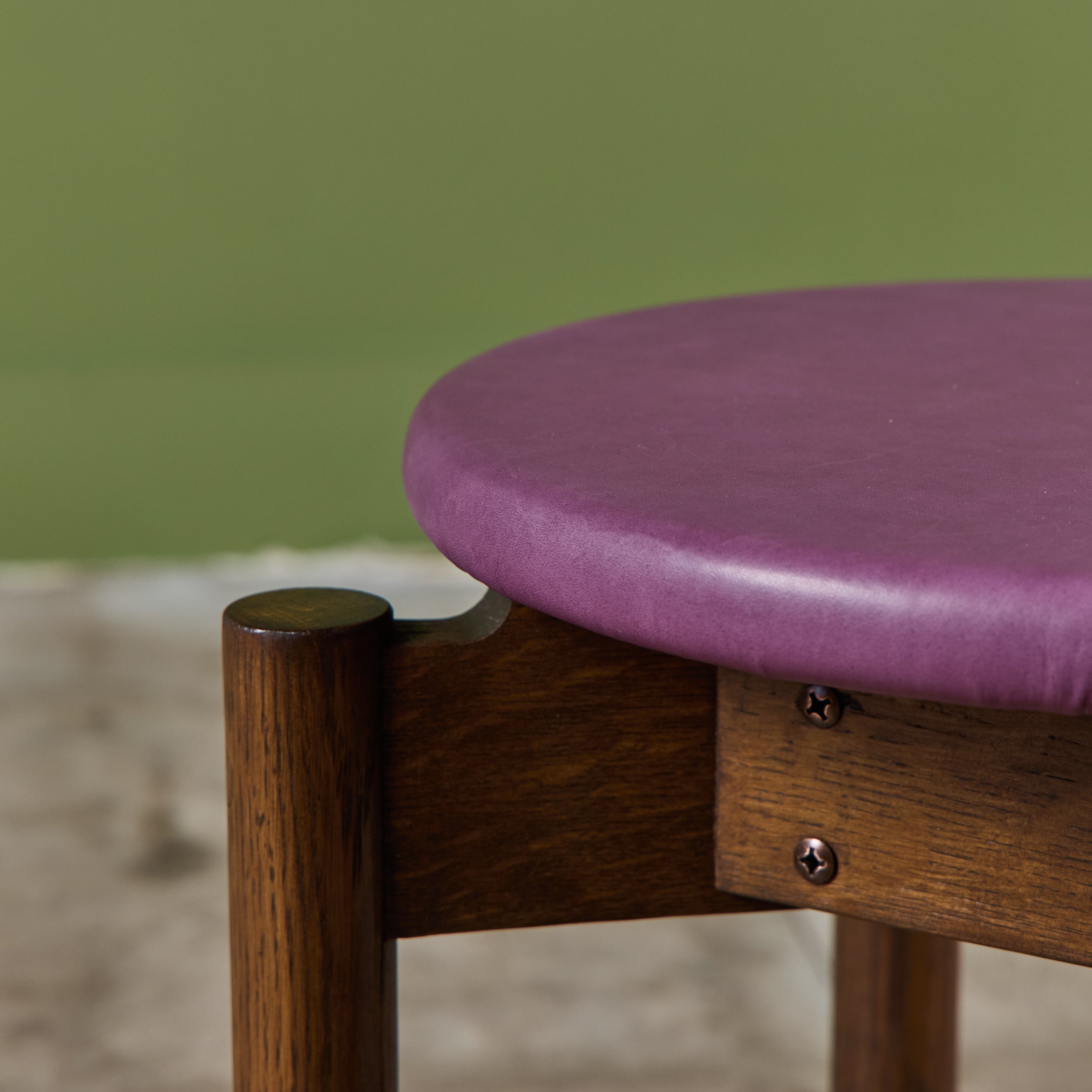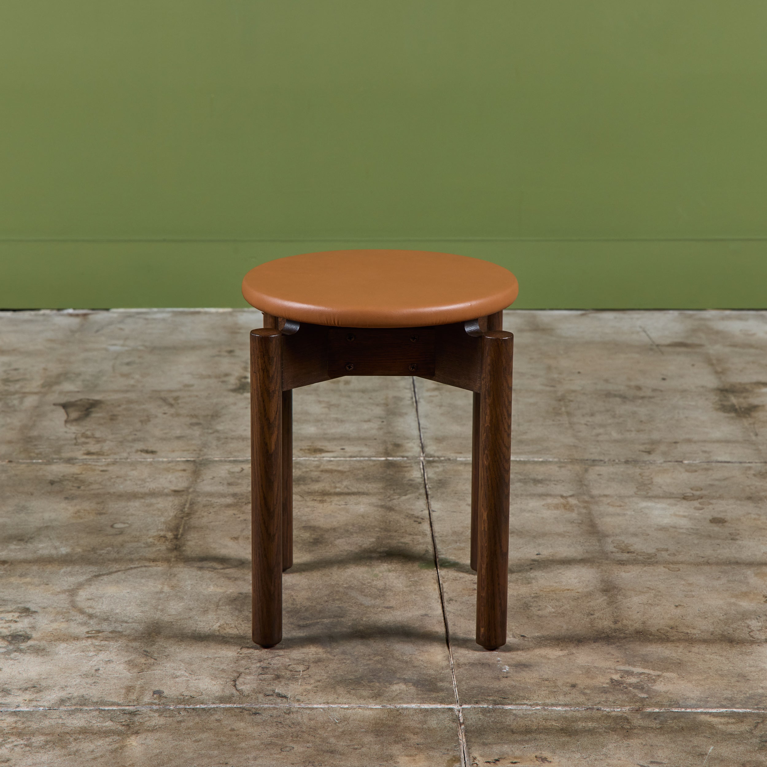 Stacking stool for Marble Imperial Furniture, 1960's, USA. The stool features new leather upholstery in either purple or tan and a walnut frame. The stool can be stacked for easy storage.