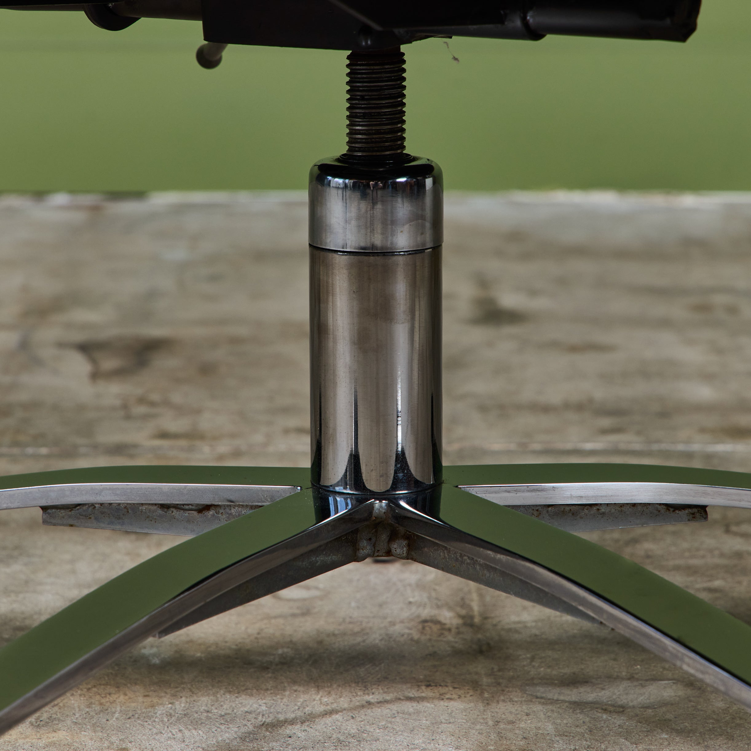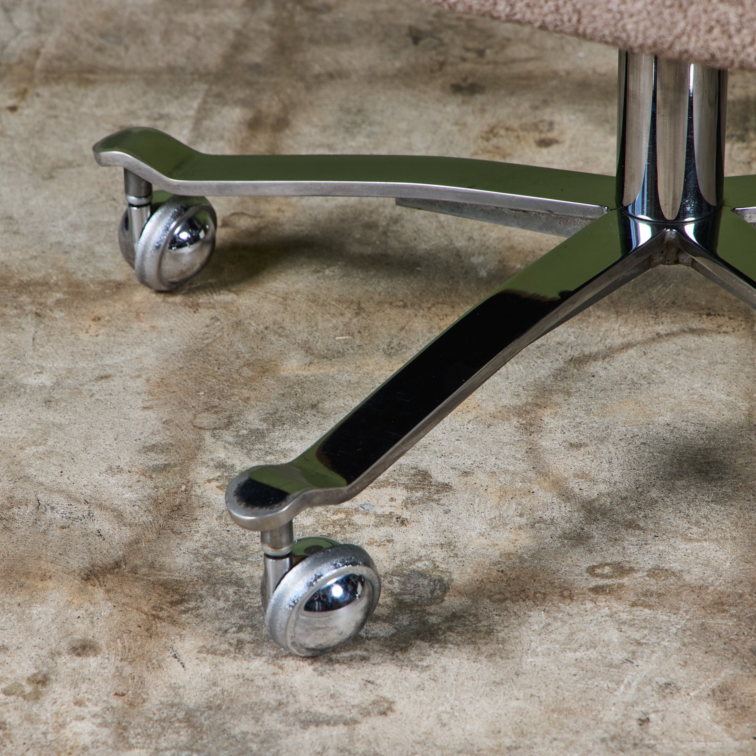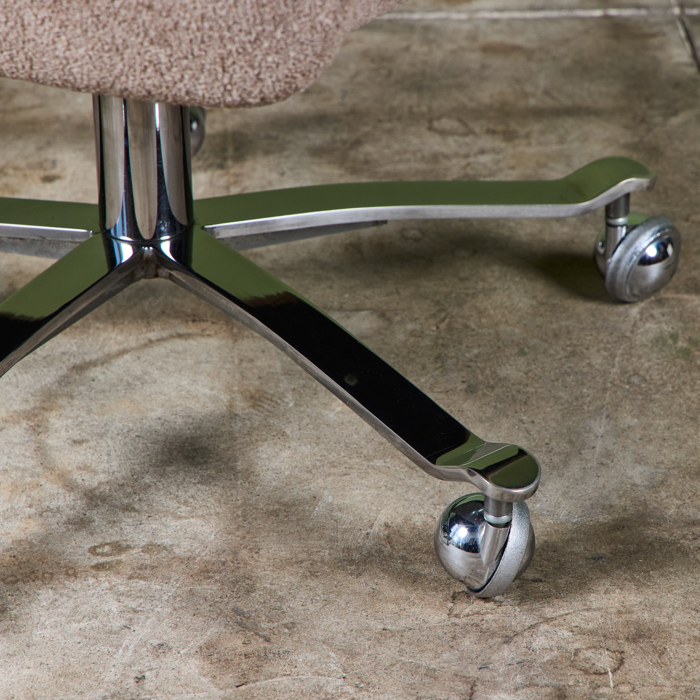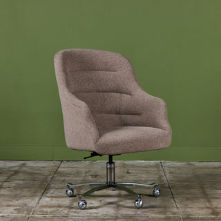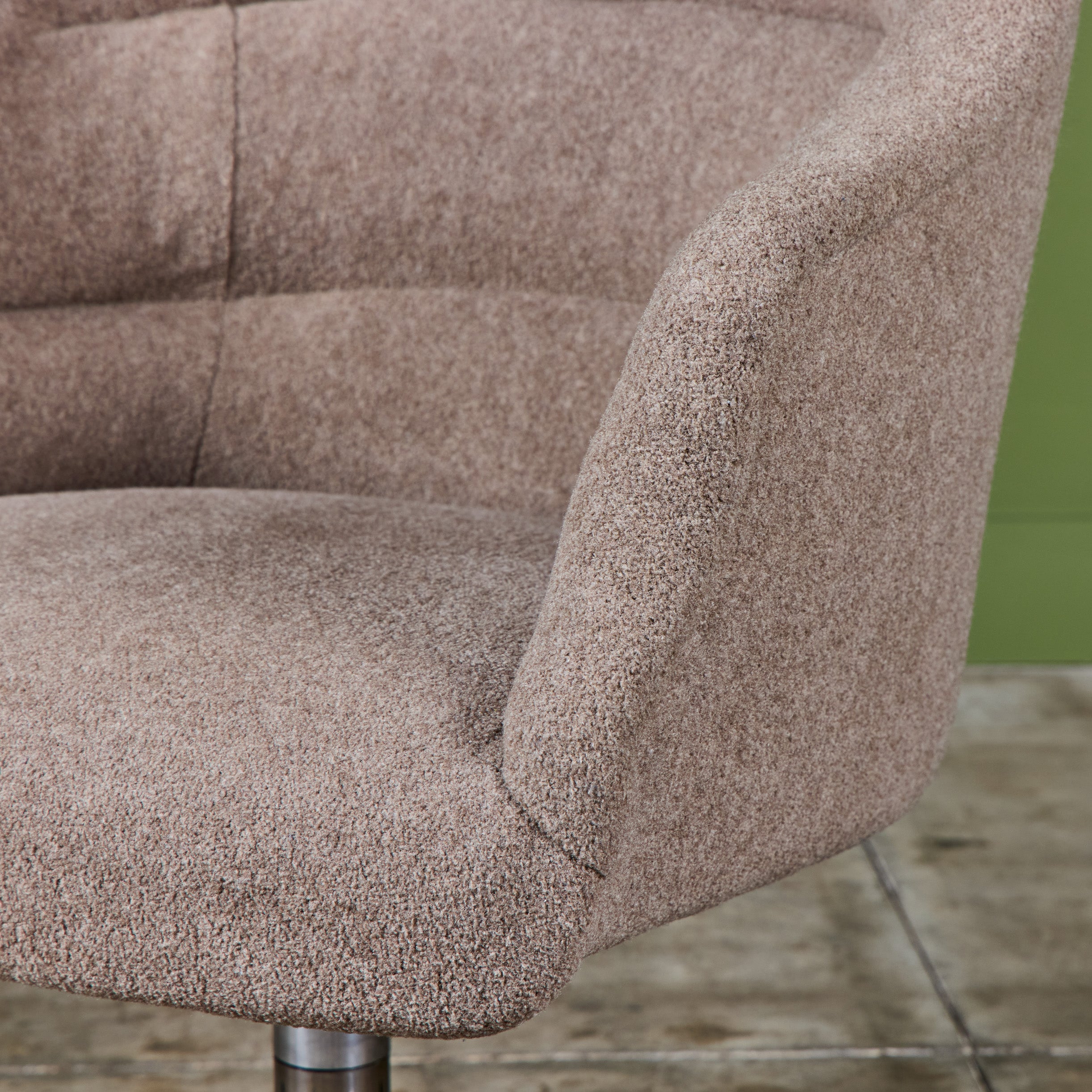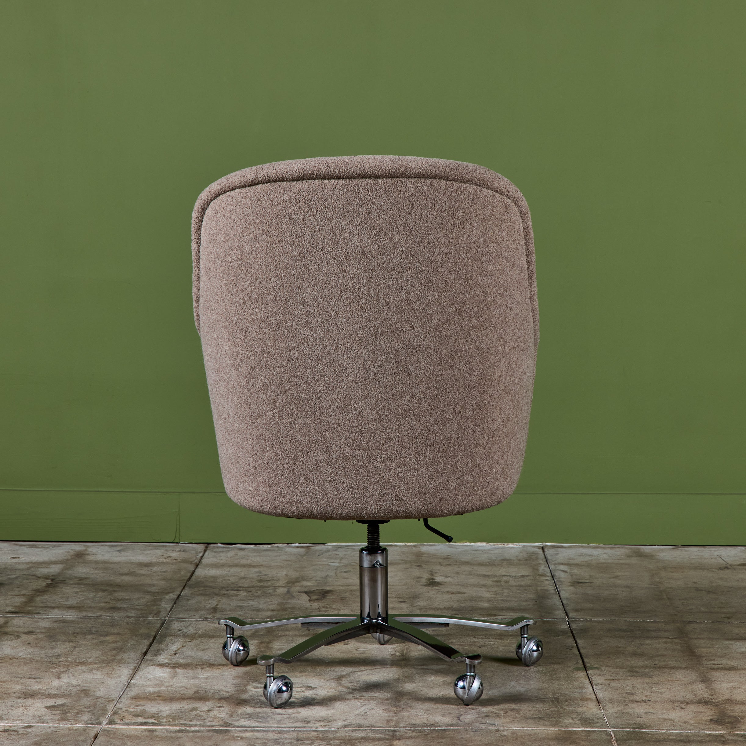 Ward Bennett upholstered Desk Chair for Brickel Associates, c.1960s, USA. This chair features a curved frame and all over upholstery. The chair has both a tilt and swivel mechanism and rests on a five star stainless steel caster.